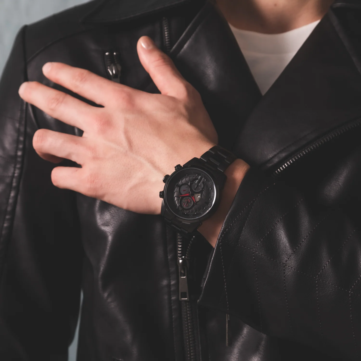 以使用「狂戰士鎧甲」的凱茲作為形象,漆黑的外觀搭配錶盤宛如鎧甲般的圖案設計,整體看起來黑暗充滿狂氣。