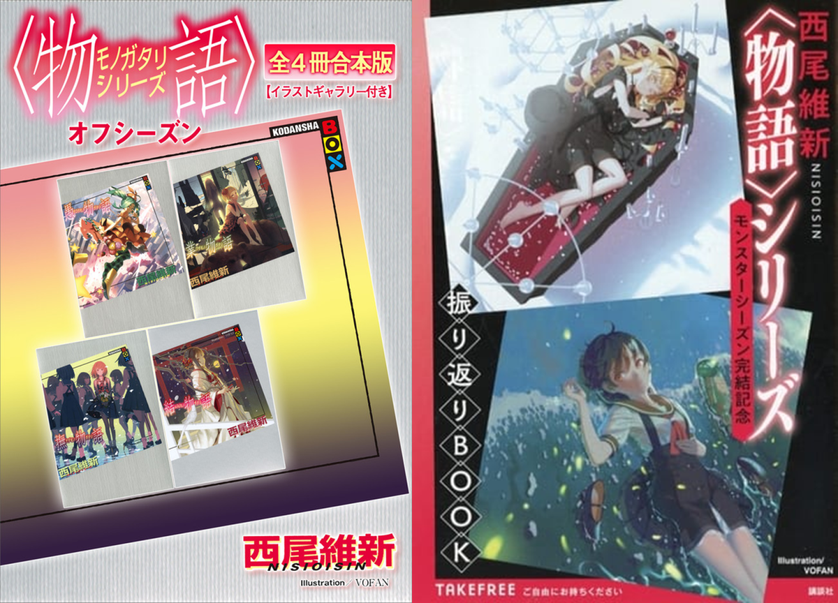 《物語系列 第外季&第怪季》是物語系列在《續·終物語》後的系列,從 2015 年的愚物語開始是所謂第外季 Off Season ,包含 : 愚物語、業物語、撫物語、結物語。而第怪季 Monster Season 則是從 2017 年的忍物語開始,包含 : 忍物語、宵物語、余物語、扇物語、死物語。