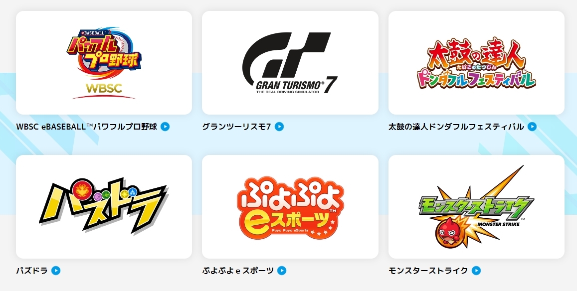 本次的六款遊戲至少是從2021年就已經如此敲定並延續了四年,而第一屆的競賽項目,則是《太鼓達人》、《龍族拼圖》、《怪物彈珠》、《寶可夢GO》,甚至前兩者特別設計成「沒有事前預選、只能現場報名參加」的低門檻同樂形式。