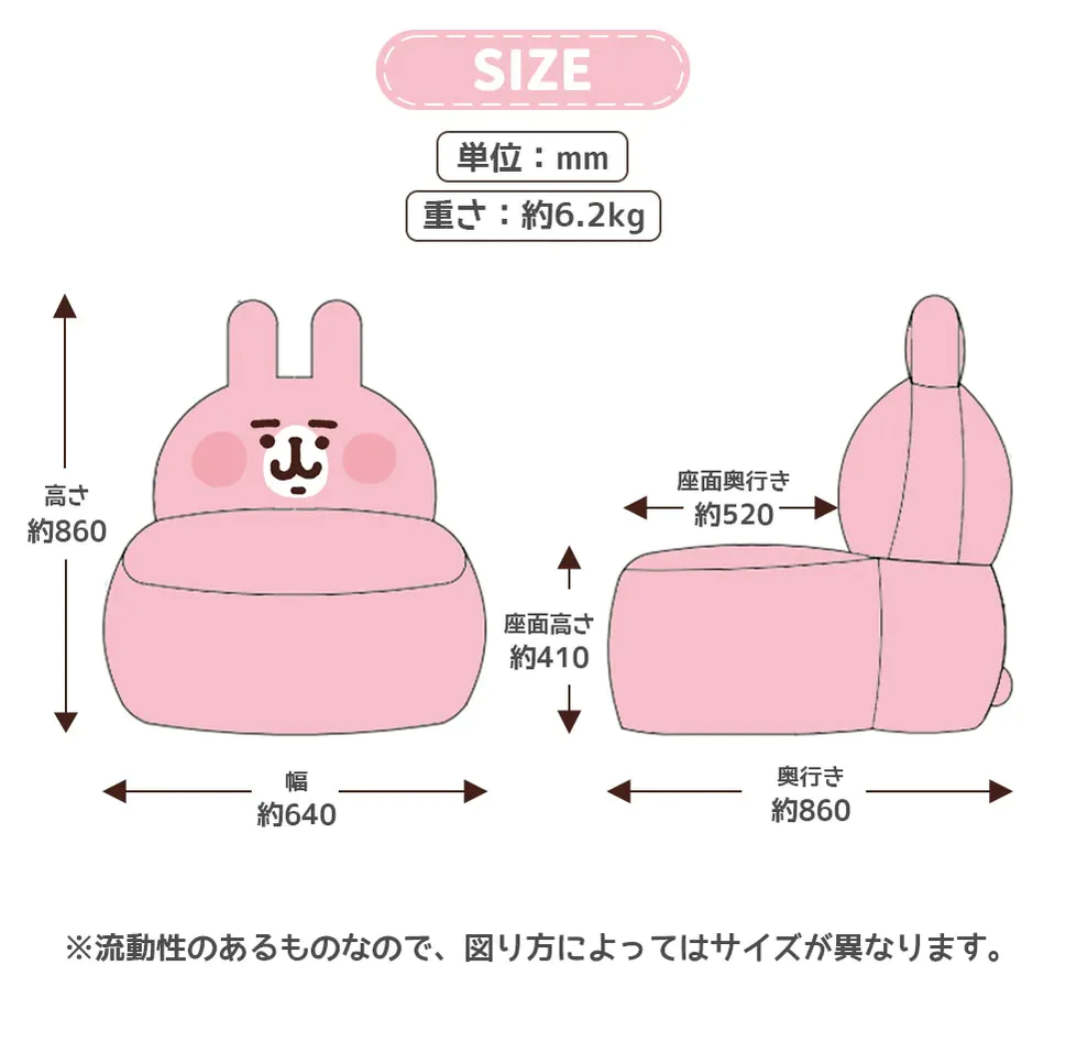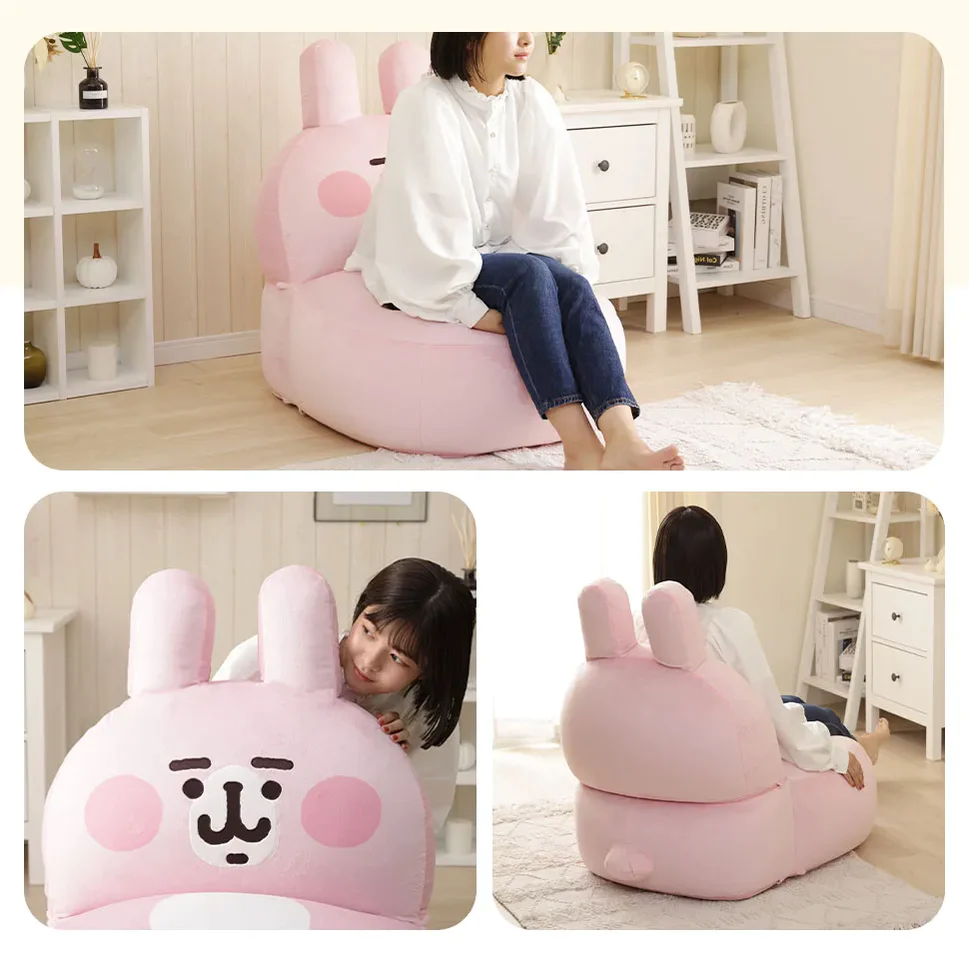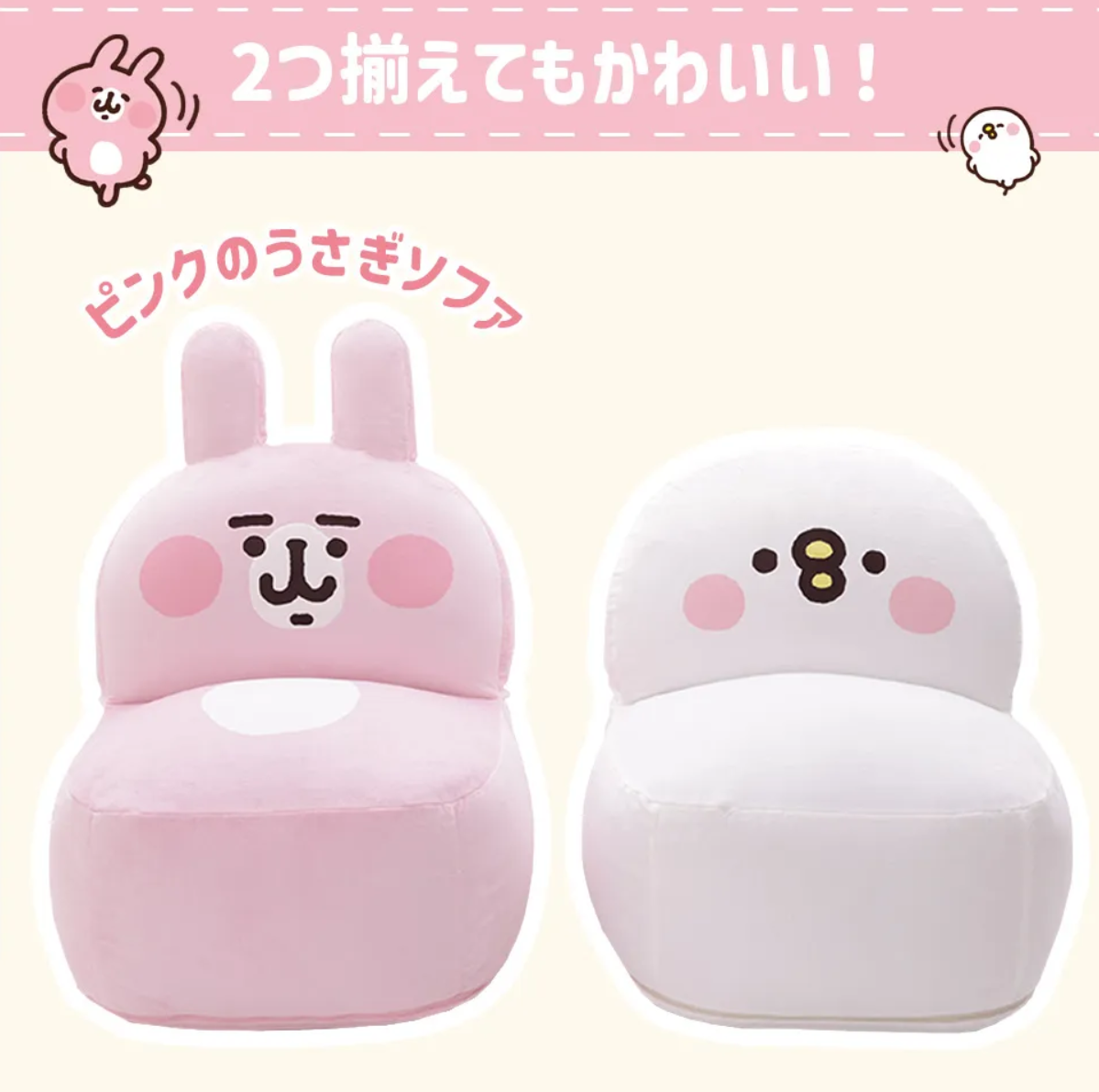 這次就將卡娜赫拉可愛又治癒的畫風下最知名的卡娜赫拉小動物「粉紅兔兔、P助」,巧妙變幻成圓嘟嘟的沙發,看起來很像是坐在牠們的肚腩上。
