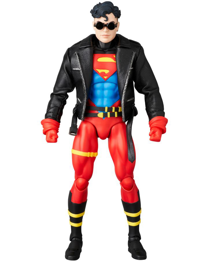 本次依照《超人歸來》設定製作的「MAFEX 超級小子」高約 15 公分,再現了那套在四肢、腰帶點綴了黃黑色的紅藍貼身戰衣,胸口的 S 標誌、頭部側邊與後腦勺剃光的髮型、較短的紅色拳套......等角色特徵都充分還原,還能穿上皮革感夾克展現不一樣的造型,頭雕一共有一般、咬牙、戴上太陽眼鏡三種,可以跟 MAFEX 早先推出的「超人」、「生化超人」一起把玩。