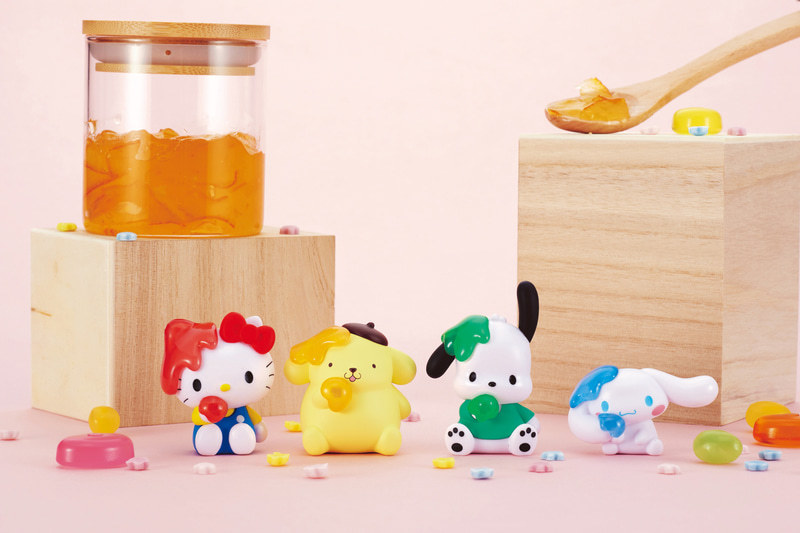 T-Arts「三麗鷗明星 果凍果醬」轉蛋,以約 5 公分的份量尺寸呈現可愛的三麗鷗明星:Hello Kitty 凱蒂貓、大耳狗、布丁狗、帕恰狗四款人氣角色,設計為正在吃果醬的造型,果醬部分採用透明材質製作,也依照角色的主題色而有鮮豔繽紛的配色,營造出質感差異與更加豐富的層次♪