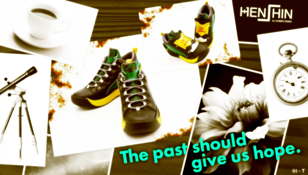 所使用的概念是以櫻井侑斗 ( 假面騎士零神 ) 為主題,當時劇中出現了從過去來的年輕時的侑斗外,還有現行時間的侑斗,本商品以櫻井侑斗戴上零神腰帶,將零神卡嵌入零神驅動器(Zeronos Driver) 變身成的假面騎士零神為靈感,打造專屬鞋款。
