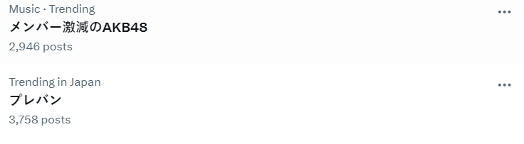 ▼「メンバー激減のAKB48」登上 X 趨勢