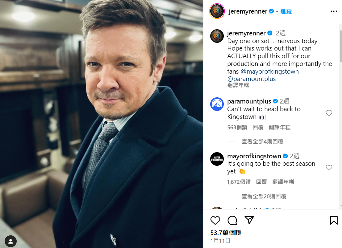 去年一月「鷹眼」傑瑞米雷納(Jeremy Renner)遭遇鏟雪車事故重傷後,經歷了一年的復健,終於在近期宣告復出,由他參與主演的 Paramount+ 影集《國王鎮市長》(Mayor of Kingstown)第二季於本月 15 日正式開播,第三季也在本月稍早開拍。