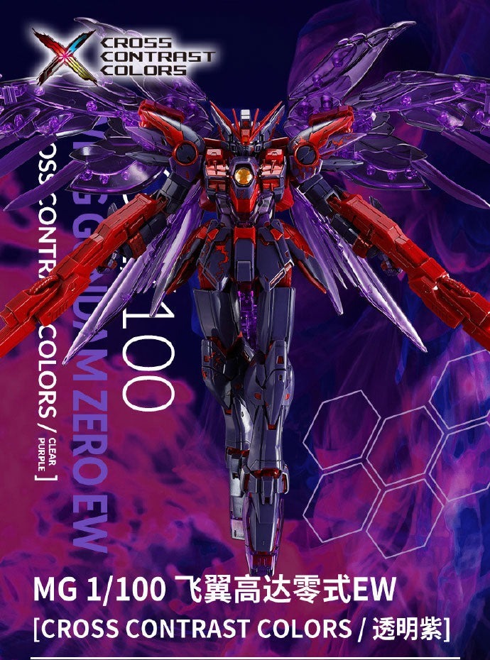此商品與去年於中國萬代官方旗艦店先行販售的限定商品相同,名稱中的 CROSS CONTRAST COLORS 是將單色、透明、金屬色、貼紙等各種材料與萬代研究的組裝模型技術融合,混搭出和原作形象產生極大對比的全新效果。原作中彷彿天使的飛翼鋼彈零式 EW 也在此系列中化身為身軀遭到黑暗侵蝕的墮天使之姿。