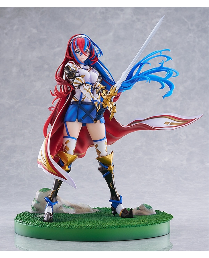 這款由INTELLIGENT SYSTEMS企劃開發製作的聖火降魔錄Engage之琉爾,是以女性版本為外型基準,比例1/7,全高約有25.5公分。其藍紅各半的髮型與眼睛是琉爾的特徵,透過實體還原,更顯得相當特別,雙手持的劍就是其專用武器「里貝拉錫翁」(リベラシオン),腳下所踩的草皮,恰好成為了獨特的底座,飄動的長髮,以及紅色的披風,讓整體的動感更加分。