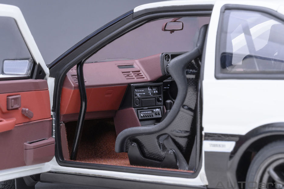 這款由AUTOart所推出的頭文字D之TRUENO AE86,為D計畫車隊時期的最終版,本款乃是距離六年之久的大改版。透過3D掃描的技術,對實際車款再次重新驗證所有車件部位的正確度。在一些細部都有修改,包含車蓋、雙側門、後側車架門與行李空間等等,都有開闔的設計,車體內的各個部件,也都一一還原,車體材質採用合金,讓整體質感更顯出眾。AUTOart向來是高級合金模型車的代表品牌,喜歡頭文字D的朋友,值得參考收藏。