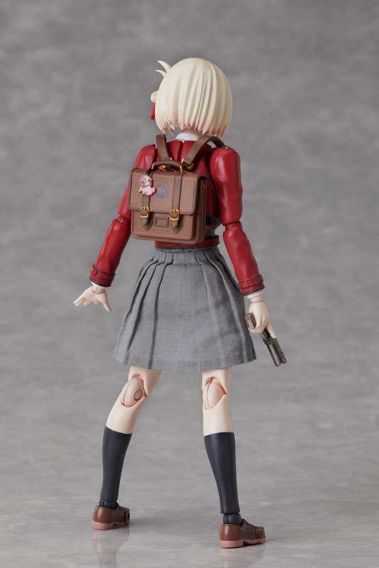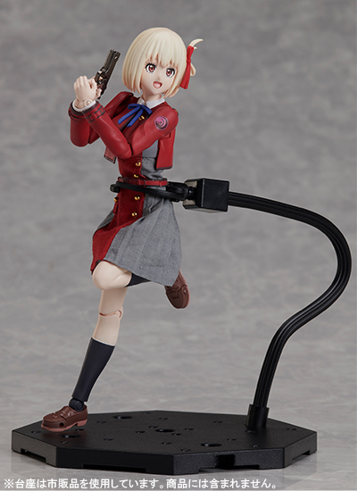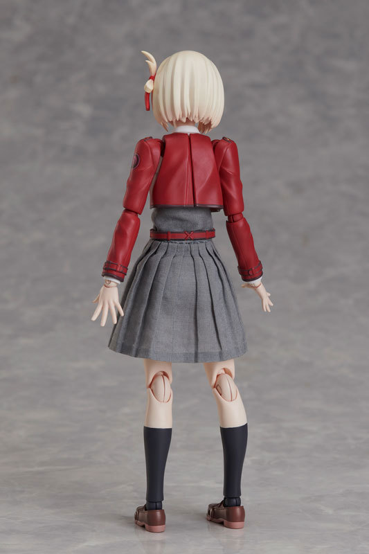 「BUZZmod. 錦木千束」1/12 比例可動人偶,尺寸約高 14 公分,還原千束身穿城市迷彩服-制服的造型,仔細刻劃排釦、皮帶與胸前的層次和袖子等細節,裙子的部分更使用布製,可以盡情擺出各種腿部姿勢!充分利用簡單但可動範圍出色的肩部關節以及置於體內的胸部和下腹部關節,能夠更穩固地再現劇中活躍的槍戰動作,搭配手槍、射擊特效,以及豐富的替換表情與手勢,賞玩千束可愛又帥氣的姿態~