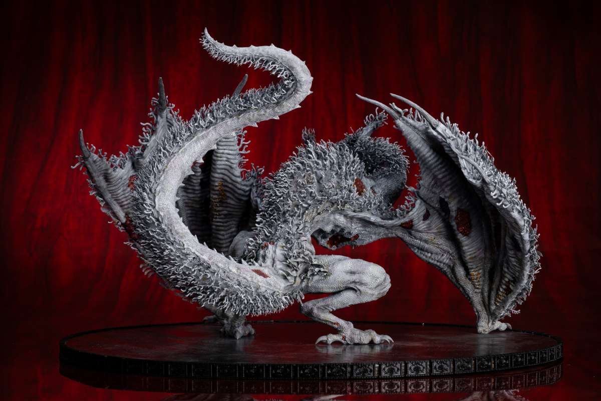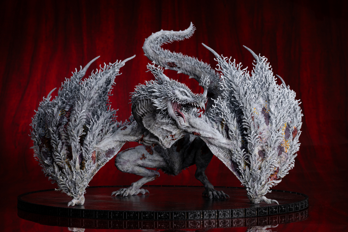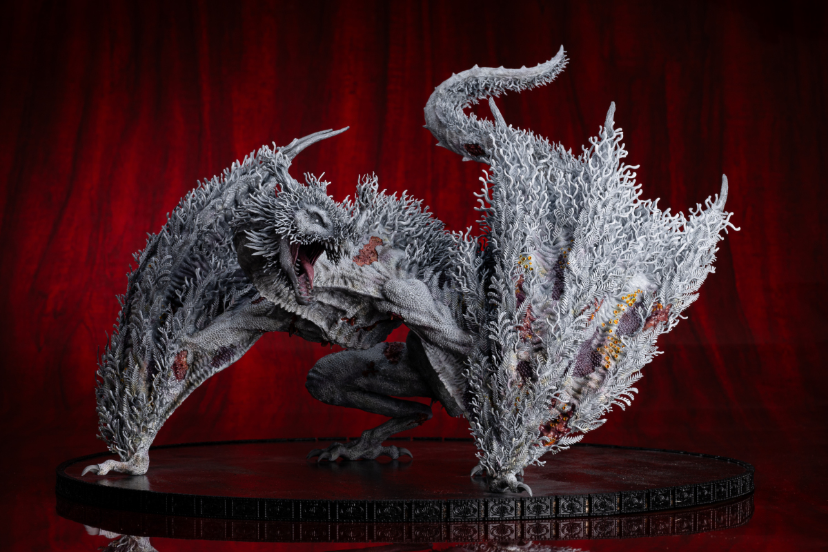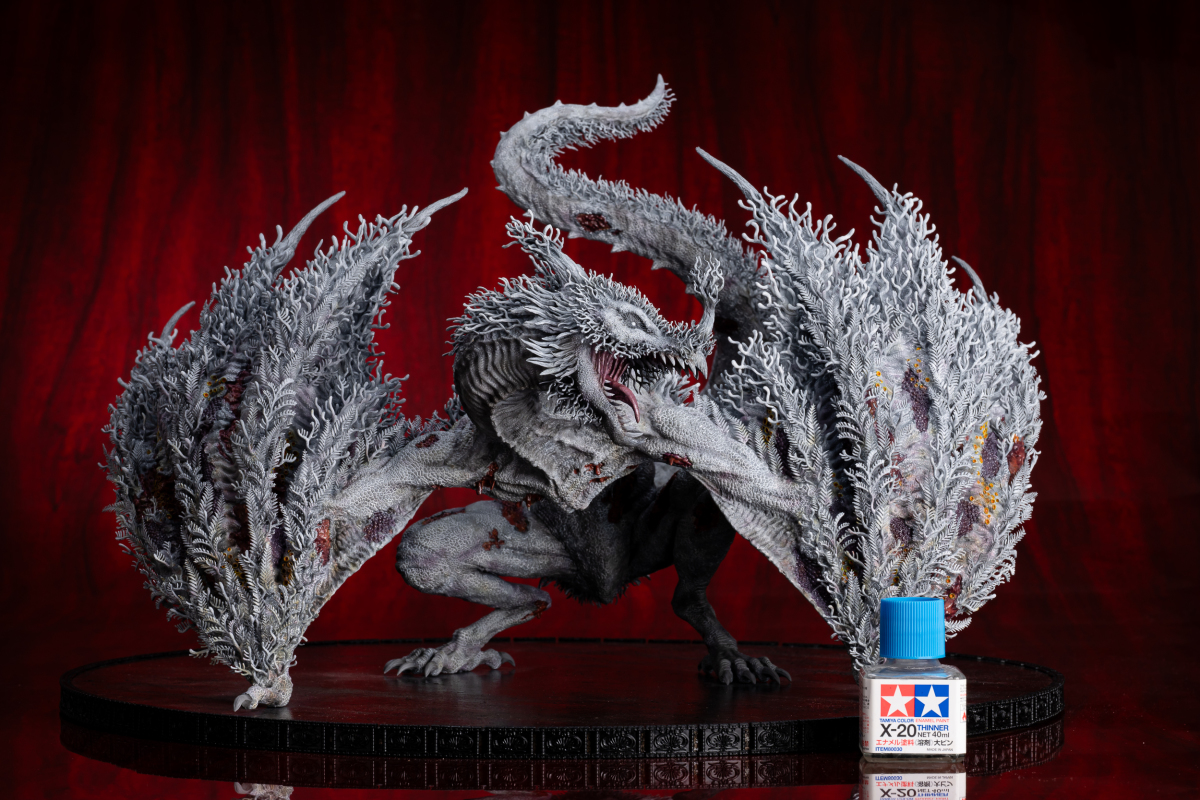 針桐雙一所雕塑的艾格基斯套件採用 3D 列印、樹脂翻膜混搭而成,以寬約 45 公分的尺寸再現於地面爬行的魄力姿態,細膩雕塑出遭到猩紅腐敗侵蝕的異樣雙瞳、極具生物感的鱗片與肌肉紋理、覆蓋全身的白色菌絲與淌著鮮血的潰爛皮膚。全身造型細膩、密度極高的菌絲零件令人驚豔,不過製作時也需要更多的耐心、細心與技術來打磨細小的零件。
