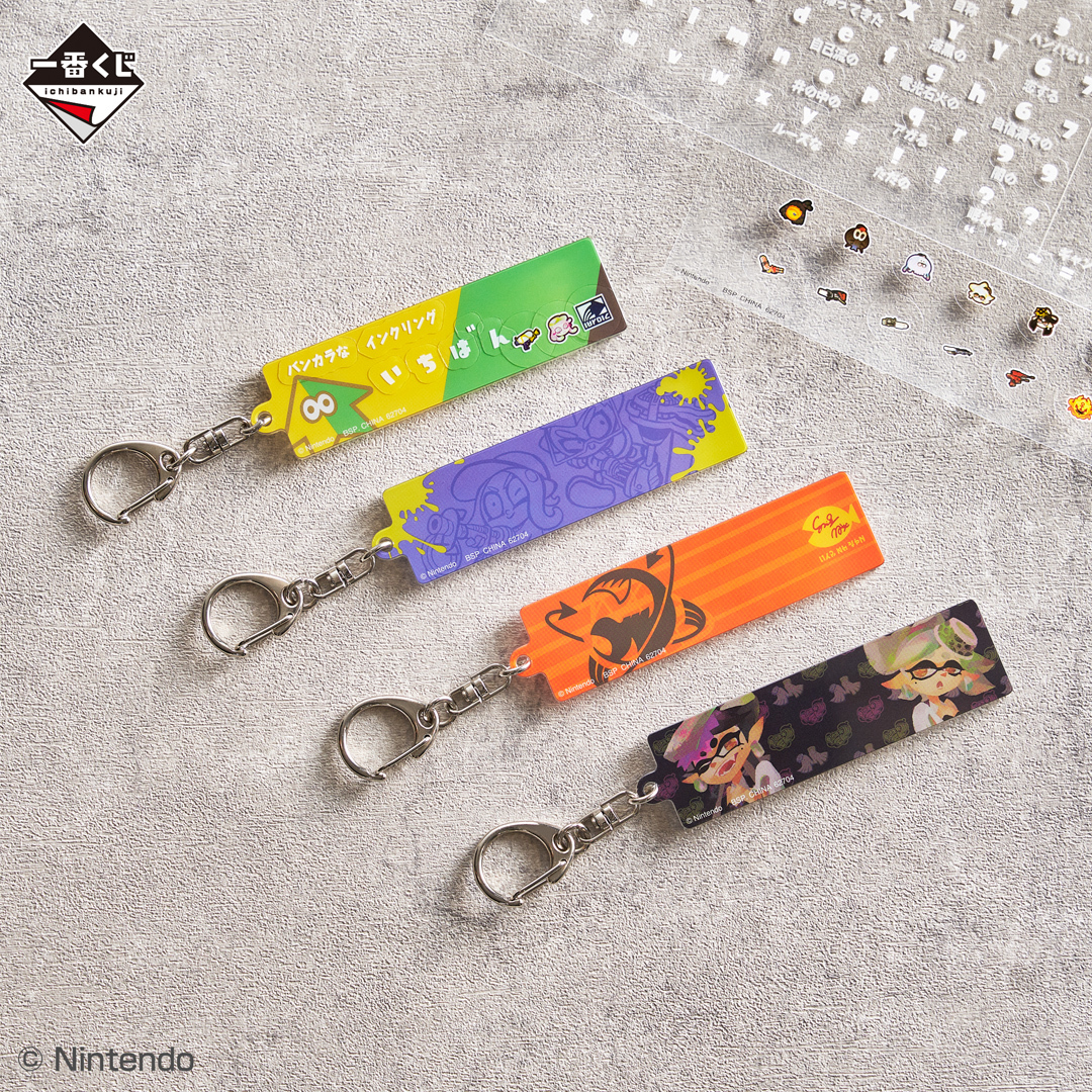 此外 E~H 的週邊小物也是相當可愛由實用,包含能夠自製遊戲中名牌與稱號徽章的鑰匙圈、以魷魚章魚標誌設計的手機掛繩、能夠陪伴你洗澡的入浴劑&海綿組,再現遊戲中武器圖標與品牌LOGO的橡膠吊飾等,極為豐富的《斯普拉遁3》遊戲元素能夠充滿你生活中的各個角落!
