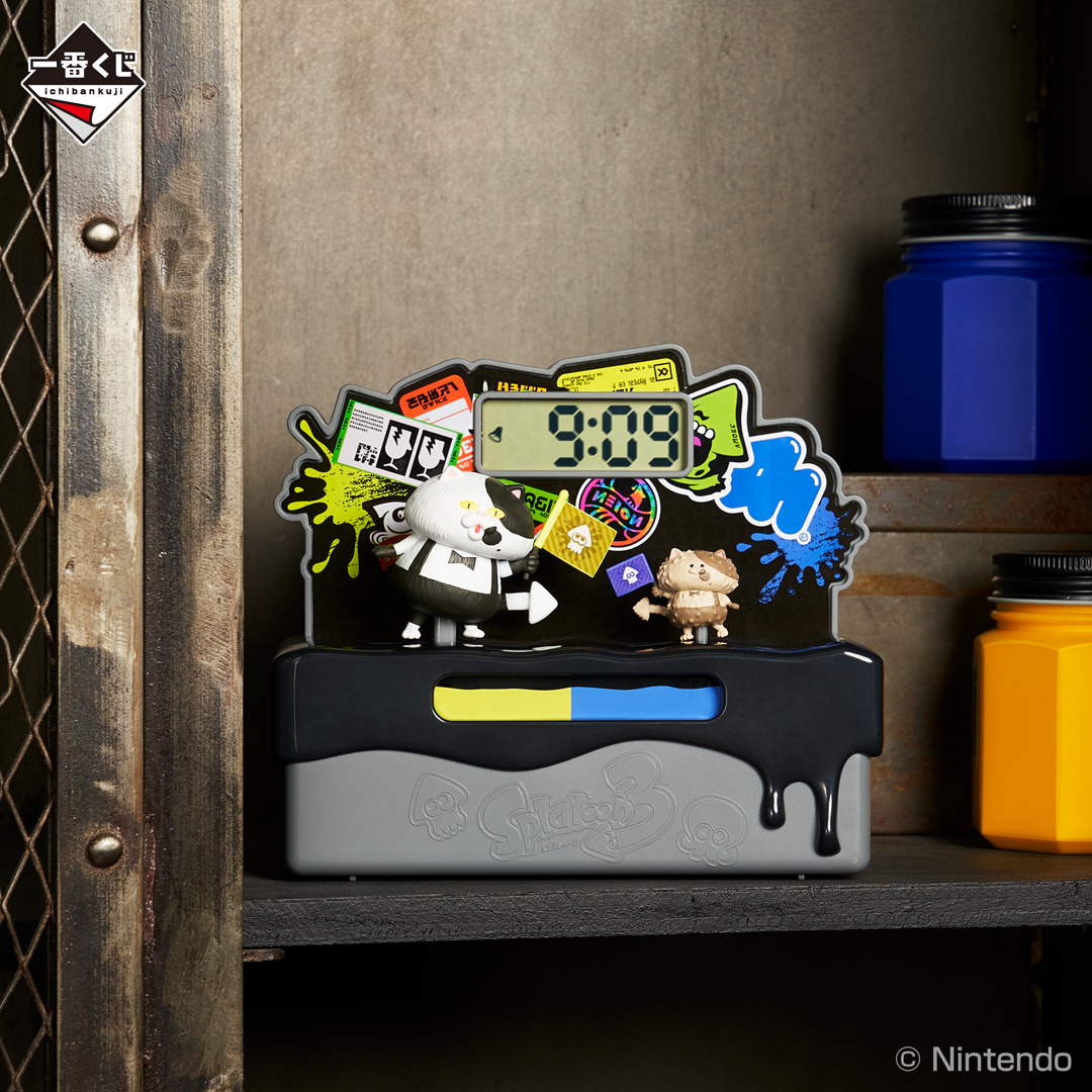 這次「一番賞 斯普拉遁3 第二彈」的大獎包含了再現占地對戰結算畫面的「 A賞 評審&小評審造型鬧鐘」、打工仔最熟悉的那個木雕「B賞 打工啦!熊先生造型存錢筒」、仿造魚漿幫成員鬼福造型的「C賞 鬼福毛毯」、真格蛤蜊中關鍵的橄欖球「D賞 真格蛤蜊!矽膠收納包」,一套僅有一個的 LASTONE 賞更是再現特殊武器「帝王魷魚」巨大烏賊布偶!