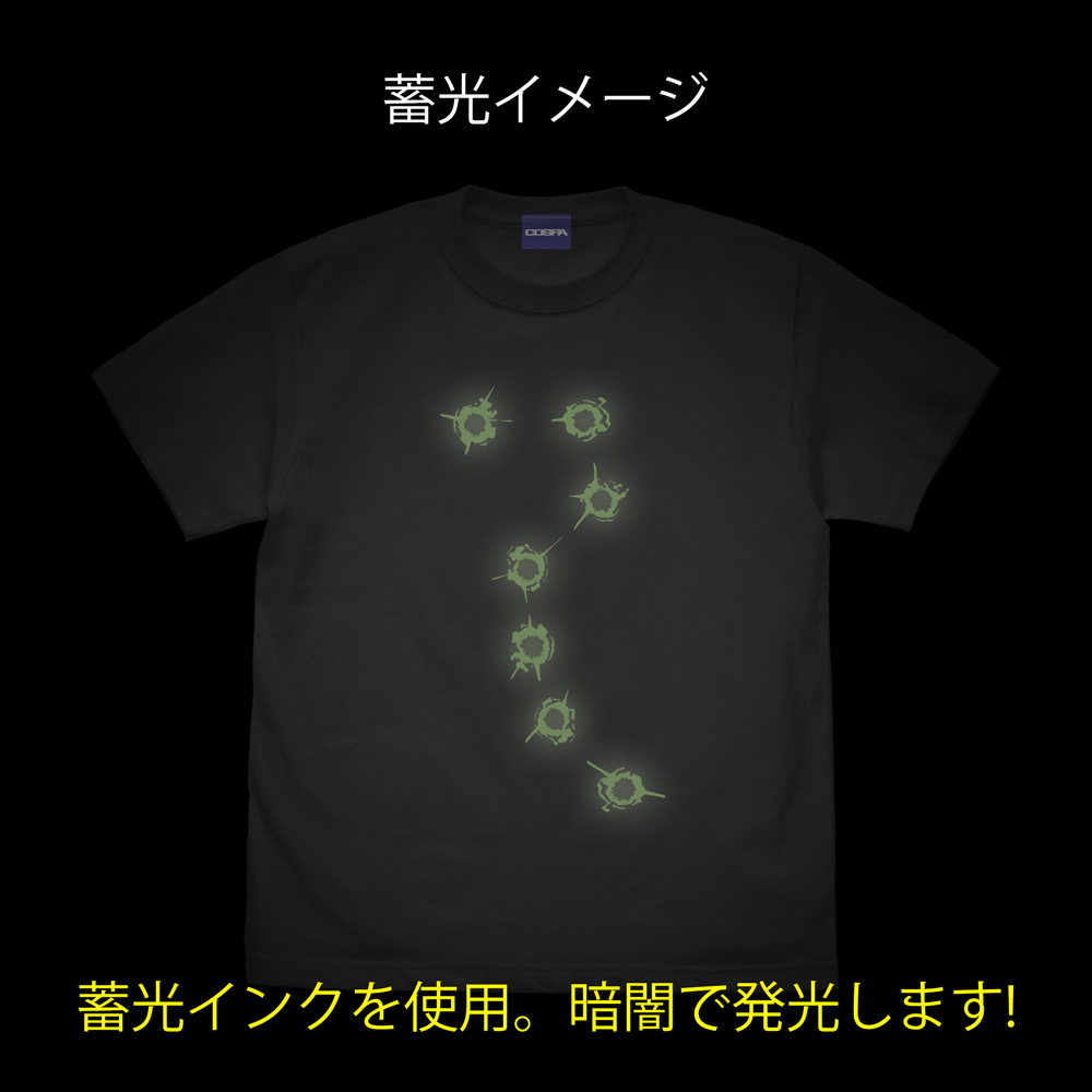 這次推出的「七星傷疤的男人」短T,將正面大方的把拳四郎代表性的傷疤放上,更使用蓄光的質料,讓你能在黑夜中閃耀著那七道傷疤,不怕對方有眼不識泰山,霸氣無敵。背面則簡單放上英文字 FIST OF THE NORTH STAR,驗明作品正身。