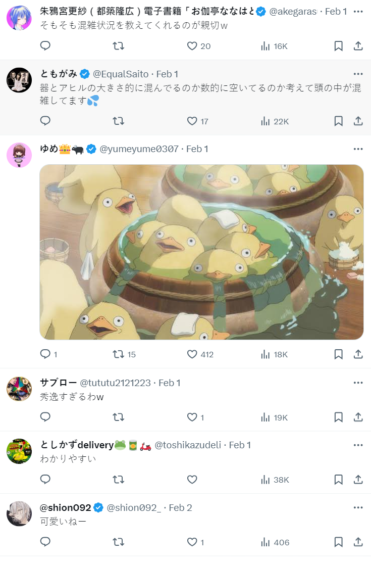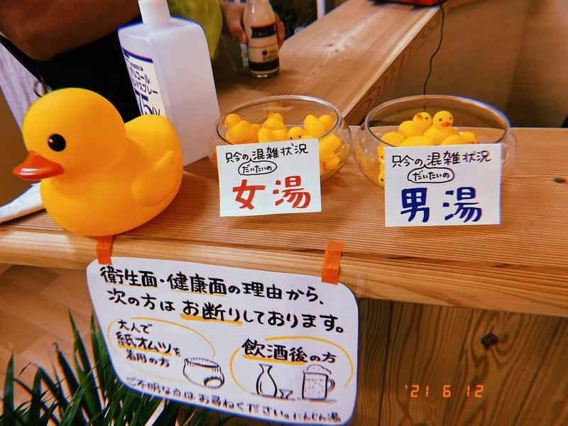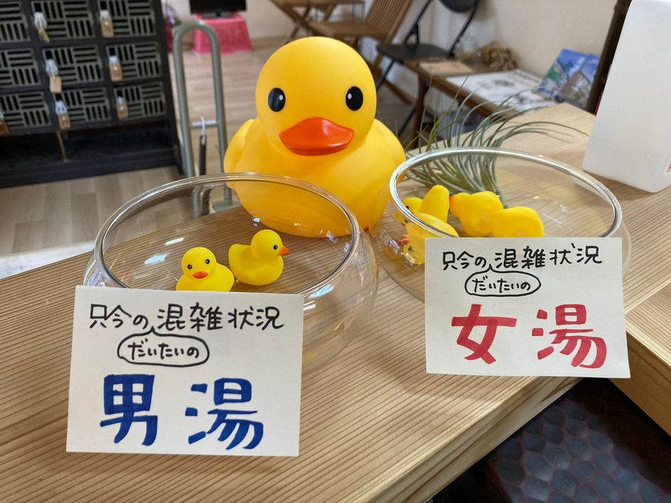 不過並非每個地方都有電子設備,日本近日 X 上有個湯屋裏,使用了著名的「黃色小鴨」,透過兩種容器分類的方式,用簡單的方式替客人顯現男女湯的現況。這樣的創意也博得網友關注,紛紛大讚店家的創意。