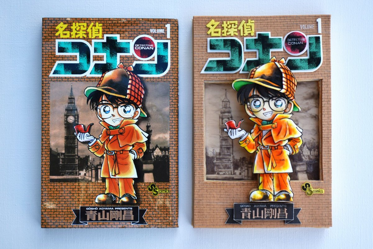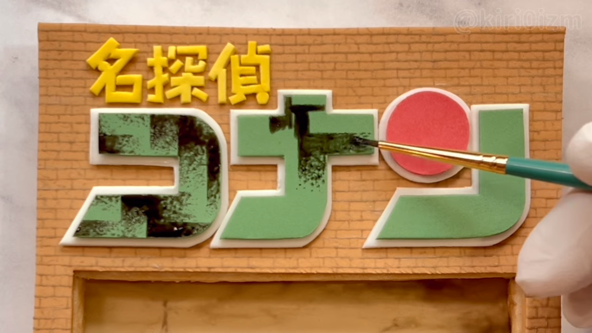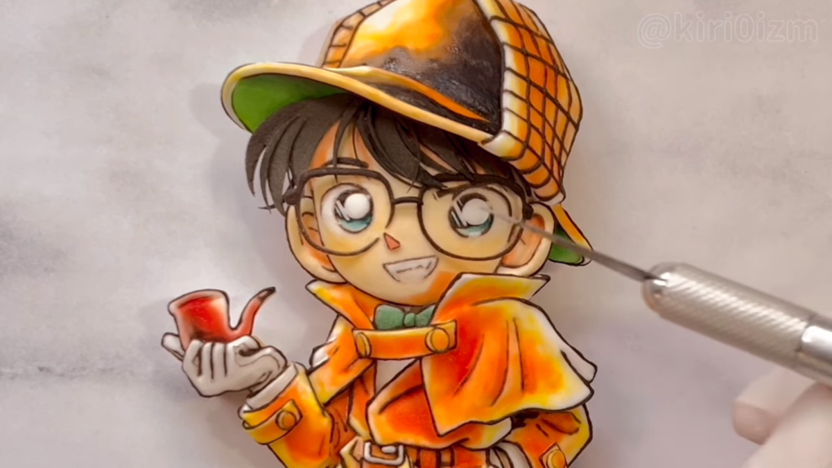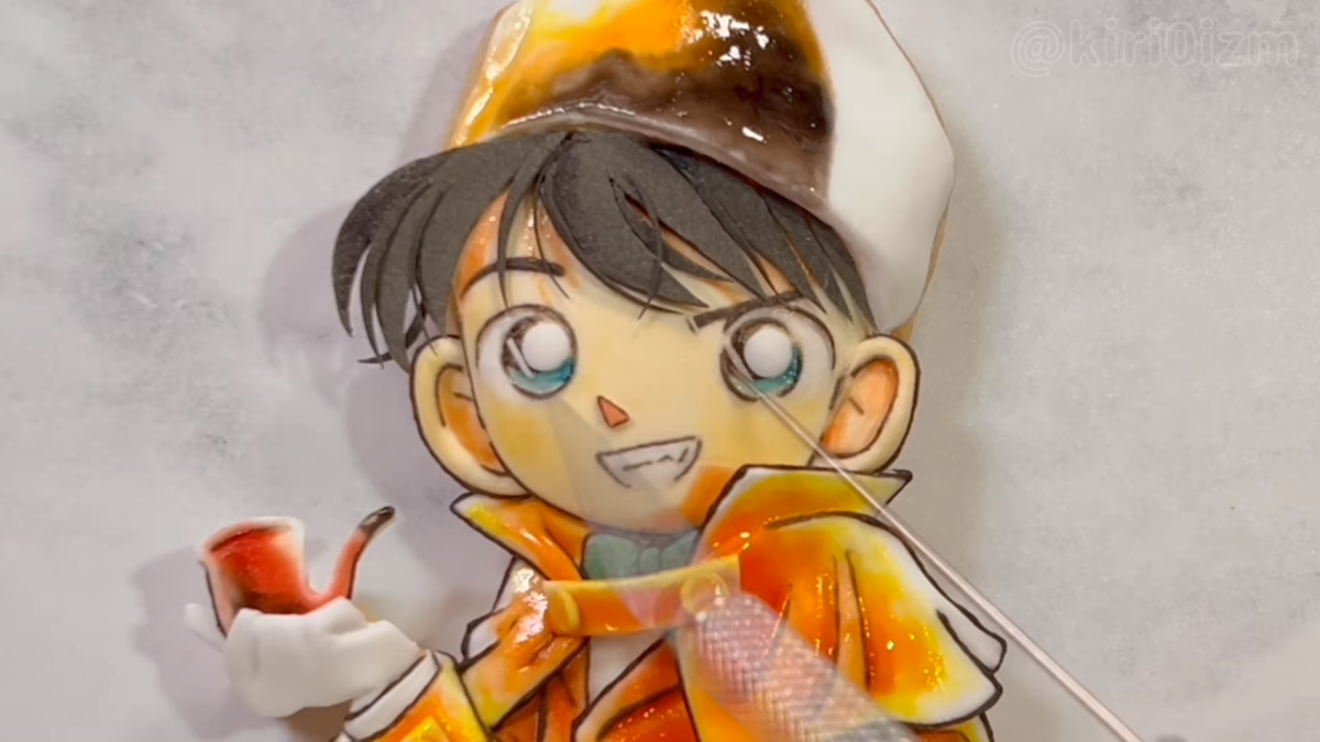 いずむ利用糖與糖霜來製作這樣的立體造型餅乾,參照《名偵探柯南》經典的單行本第 1 集封面,將其立體化,看起來有種人物彷彿跳出平面的效果,呈現出與原畫不同的韻味。面容上也十分還原,柯南招牌的笑容以及穿上福爾摩斯服裝的樣貌也完美重現。