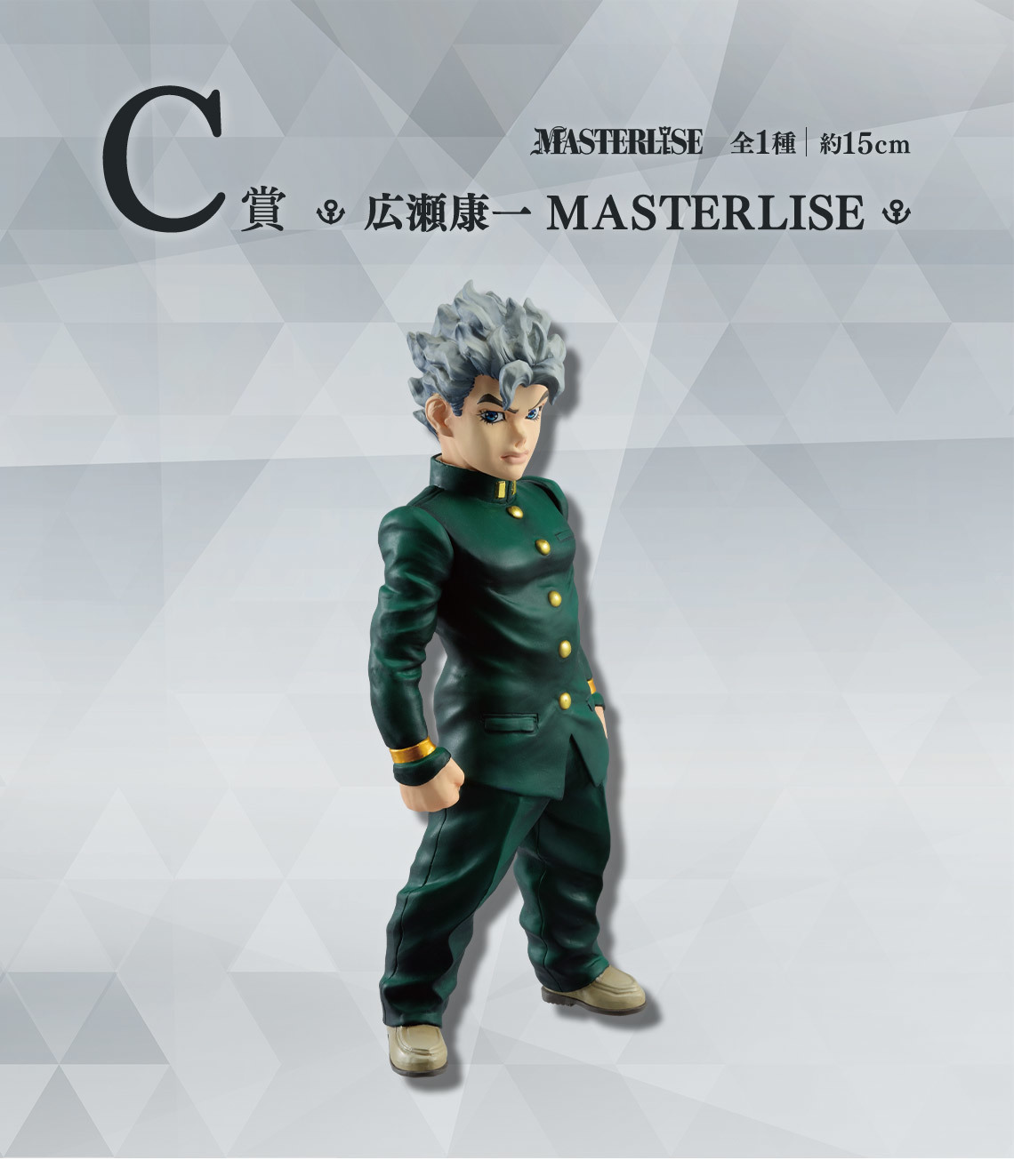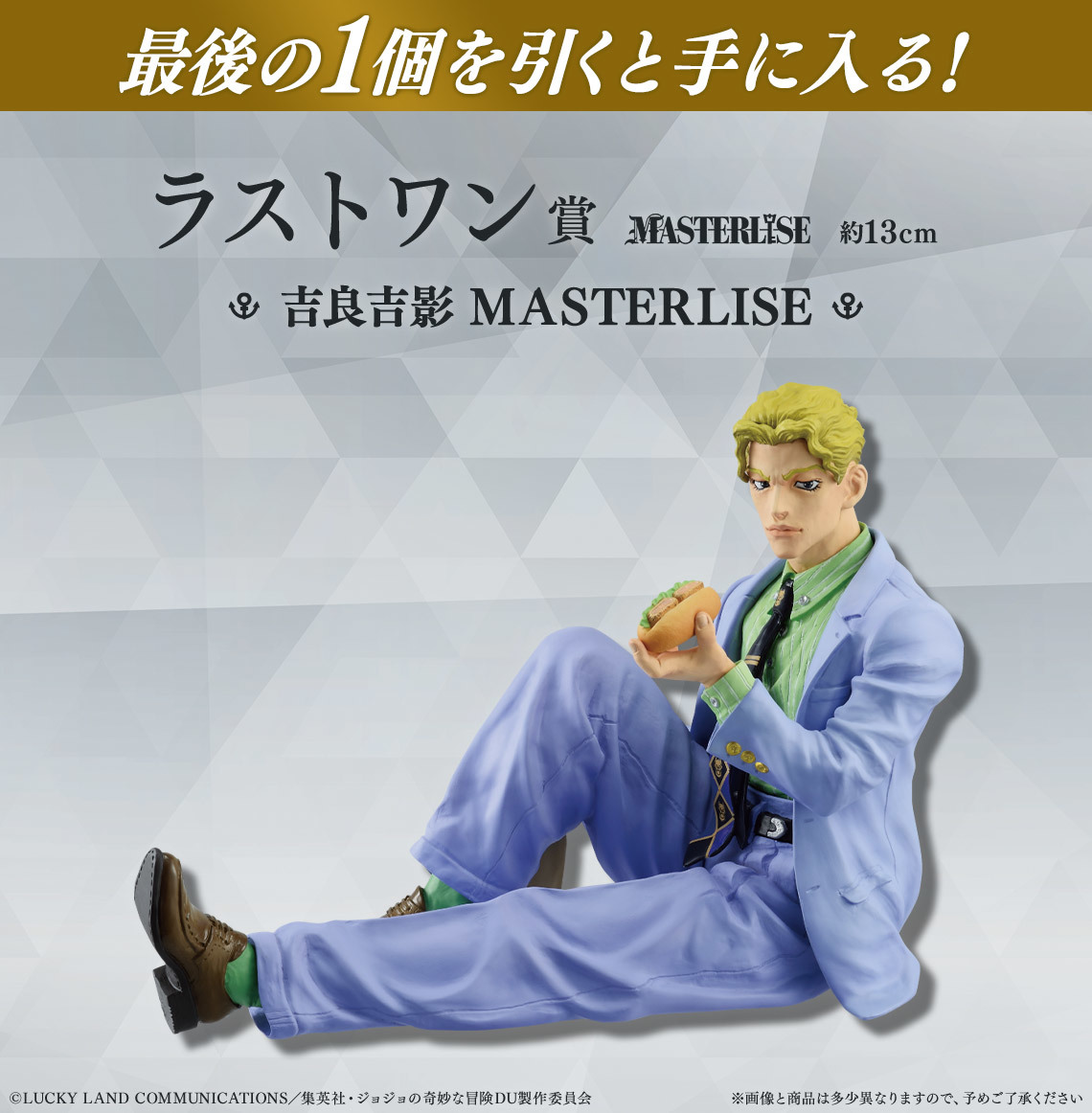 「一番賞 JOJO的奇妙冒險 DIAMOND IS UNBREAKABLE」,以第四部《JOJO的奇妙冒險:不滅鑽石》為核心,推出 A賞 ~ K賞 +最後賞等豐富的獎品!採用高階造型「MASTERLISE」系列打造的角色模型,細膩再現精緻的服裝細節,收錄有:A賞 東方仗助、B賞 虹村億泰、C賞 廣瀨康一、D賞 空条承太郎、E賞 岸邊露伴 以及最後一賞的 吉良吉影 等MASTERLISE模型,透過精緻、動感的刻畫,將JOJO難以抵擋的魅力一次收藏!另外還有杜王町麵包紙袋收藏、托尼歐‧托拉薩迪餐具盤和金屬吊飾、印章、筆記本收藏收藏等精彩的獎品!