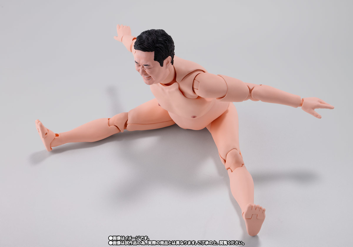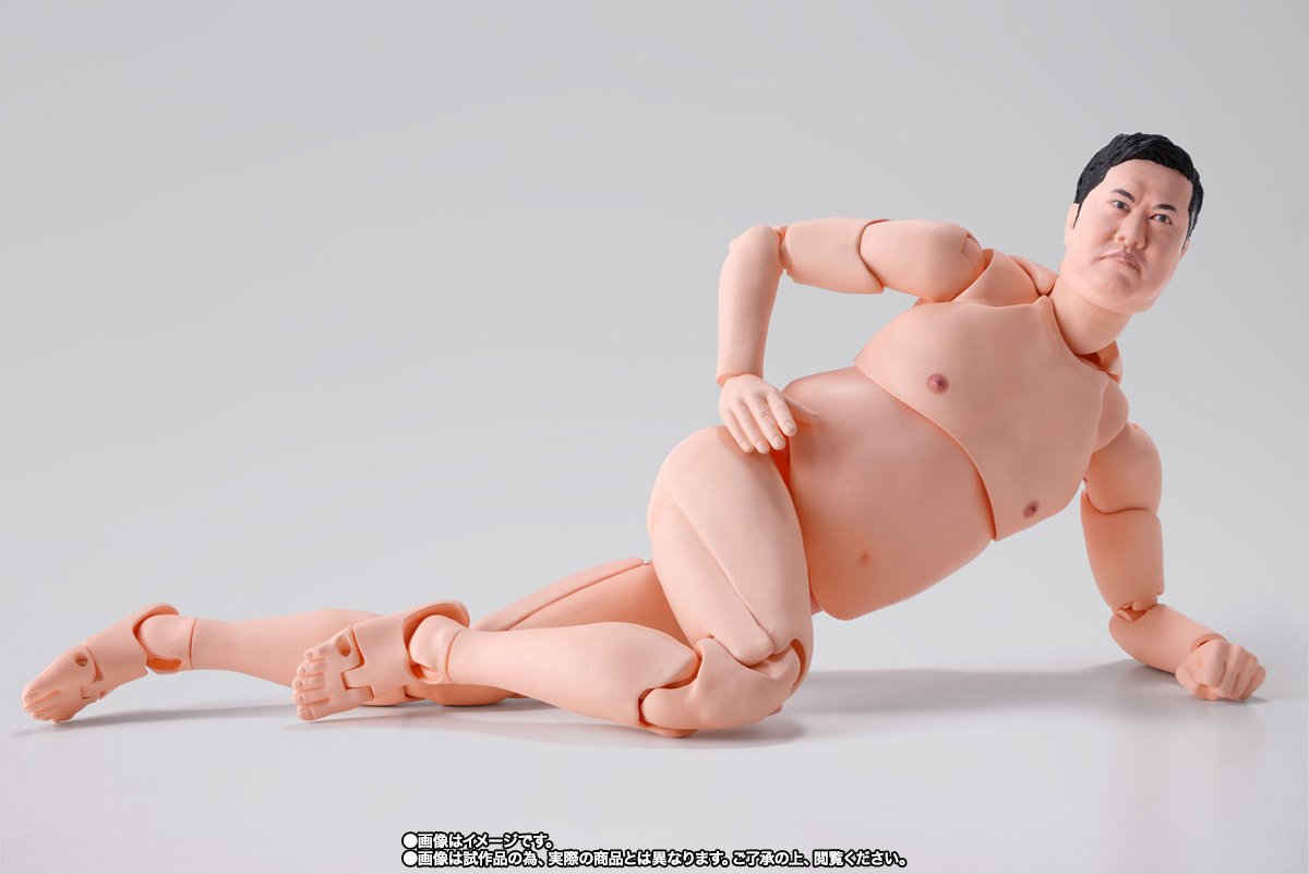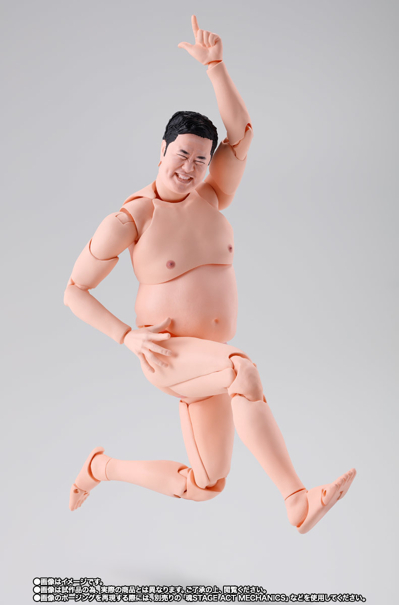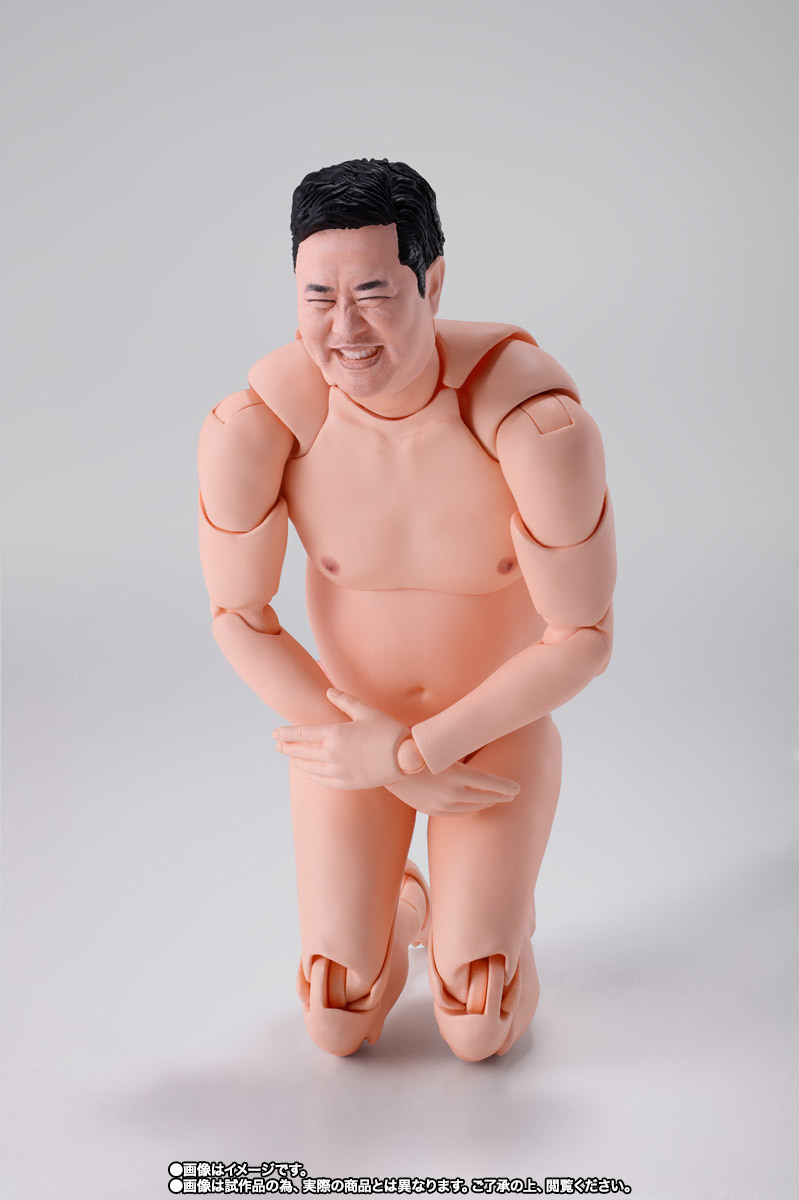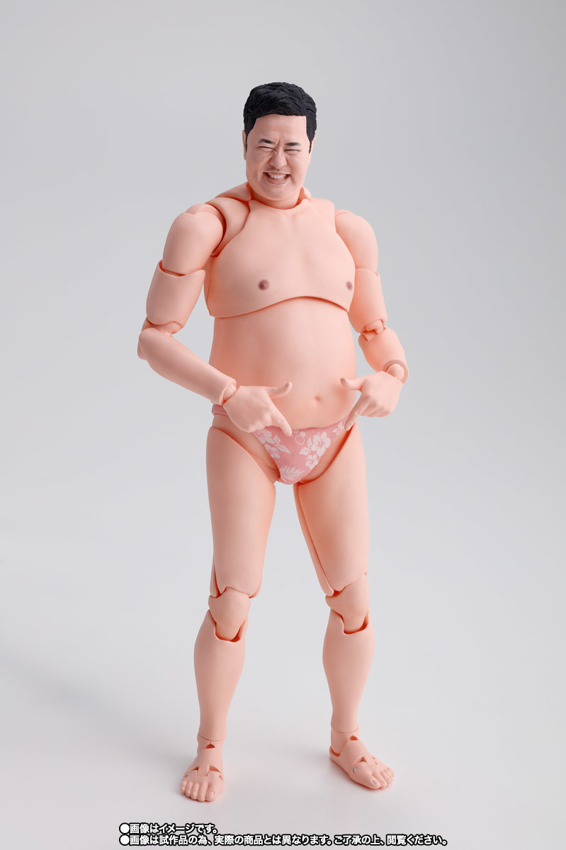 「S.H.Figuarts 總而言之很開朗的安村」可動人偶,尺寸全高約 16 公分,還原安村招牌的裸體造型,並以 S.H.Figuarts 的可動技術,能夠生動再現誇張的偽裸體姿勢!採用徹底考證真人臉部特徵的數位轉印技術,實現「微笑臉」、「嚴肅臉」、「大笑臉」等替換表情,搭配左右 3 種替換手勢零件,賞玩各種搞笑姿態!底下肉色的小花內褲也可愛呈現~