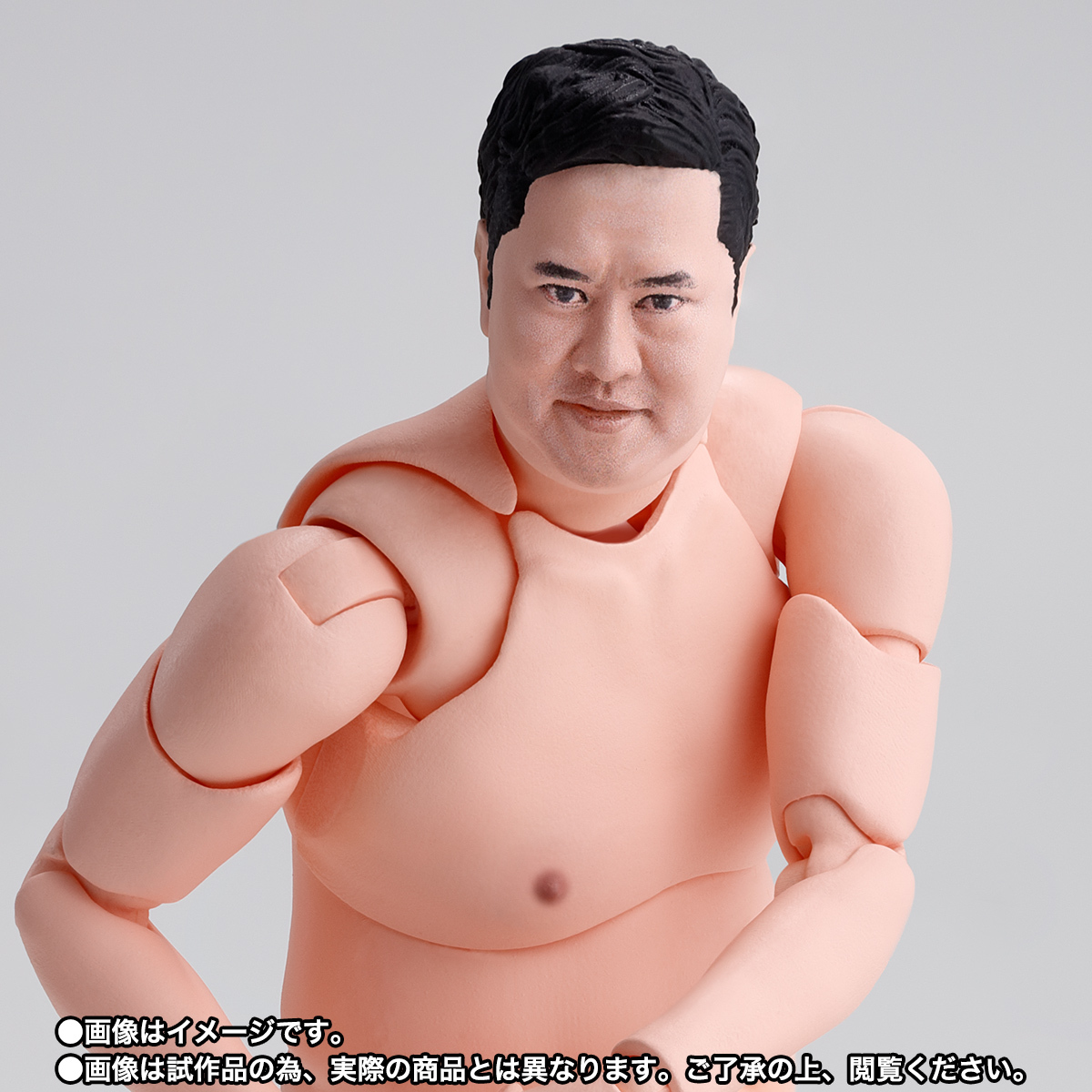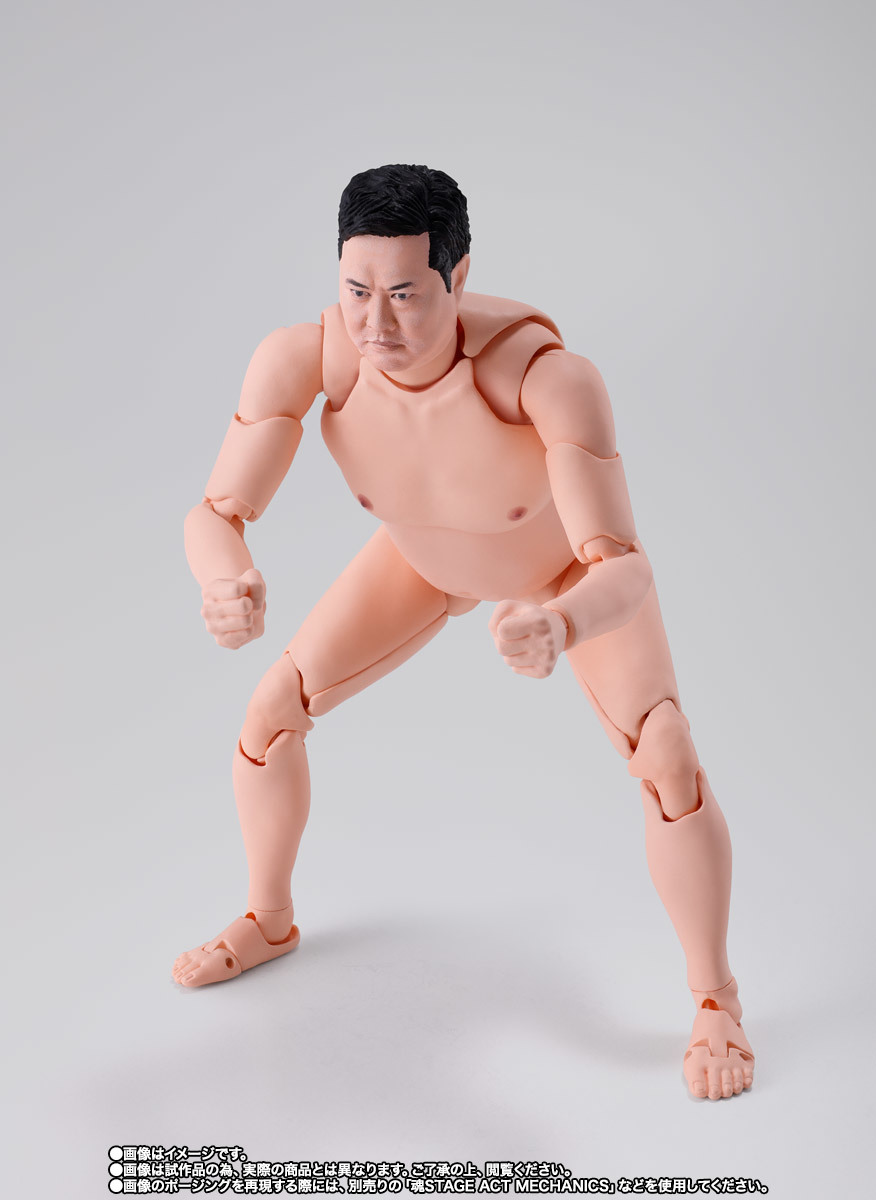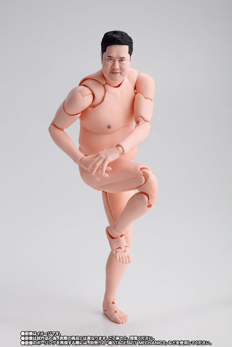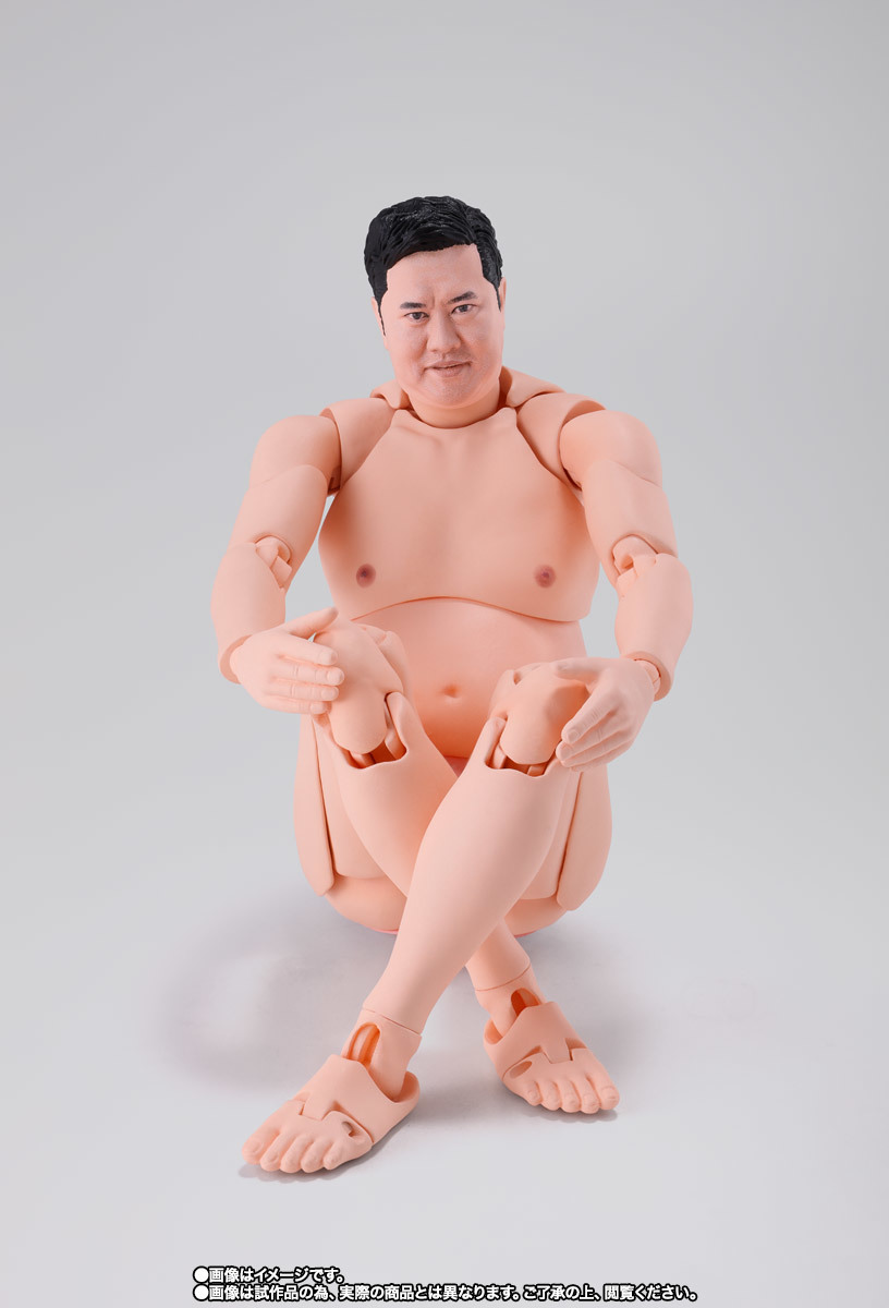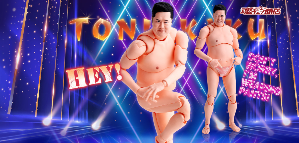 「S.H.Figuarts 總而言之很開朗的安村」可動人偶,尺寸全高約 16 公分,還原安村招牌的裸體造型,並以 S.H.Figuarts 的可動技術,能夠生動再現誇張的偽裸體姿勢!採用徹底考證真人臉部特徵的數位轉印技術,實現「微笑臉」、「嚴肅臉」、「大笑臉」等替換表情,搭配左右 3 種替換手勢零件,賞玩各種搞笑姿態!底下肉色的小花內褲也可愛呈現~