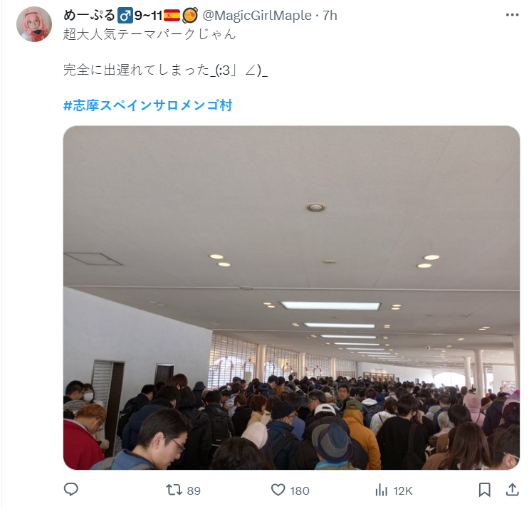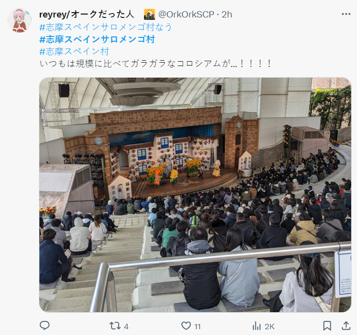 今年再次和周央珊瑚合作,此外更加碼彩虹社的大小姐「壹百滿天原莎樂美」,一起共同宣傳西班牙村的迷人之處,今日 ( 2/10 ) 活動首日起跑,馬上用湧進大量人潮,還出現夜排的情況,讓不少網友驚呼 : 「西班牙村真的復甦了 !」,也成為網民話題。