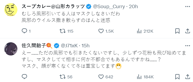 亦有網友指出大家可能都遺忘疫情期間難熬的日子,真希望大家不要為了這種事情出言攻擊,戴口罩本來就是日本人常見的防護措施,保護好自己是應該的。