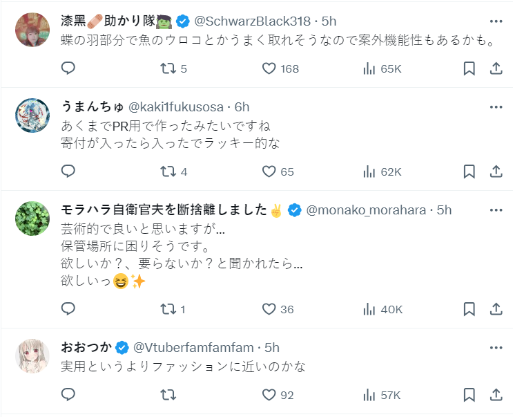 雖說就是為了宣傳故鄉當地的傳統藝術,不過這款刀看起來實用性似乎不被大家認同,可能因為造型看起來不太像是正統刀具,價格又高昂。也有網友認為既然是國家傳統工藝品,或許真的需要的人比較稀少,官方也表示目前已有一名民眾換得,後續還會準備給想要的國民,歡迎幫助地方發展。