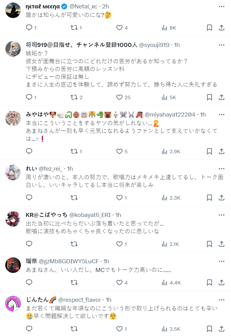 事實上進藤天音自出道以來也持續有進步,但對她的攻擊卻絲毫未停止,不少網友也認為這樣的行為已經造成人身安全與名譽傷害,公司保護好旗下藝人是很正當且合理的作法。