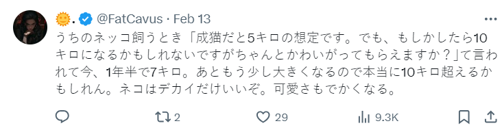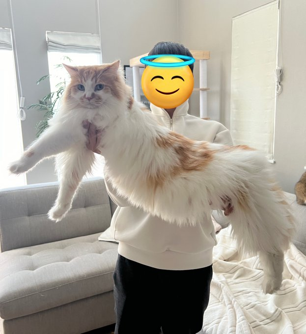 推主在家養了五隻貓咪,當然ぽてち現在就是最大隻的那一個,也時常分享自家貓咪趣味的照片在 X 上。不過也自嘲如果可以的話,還是希望牠小隻一點,長這麼快怕牠老得也快,希望可以陪伴久一點。