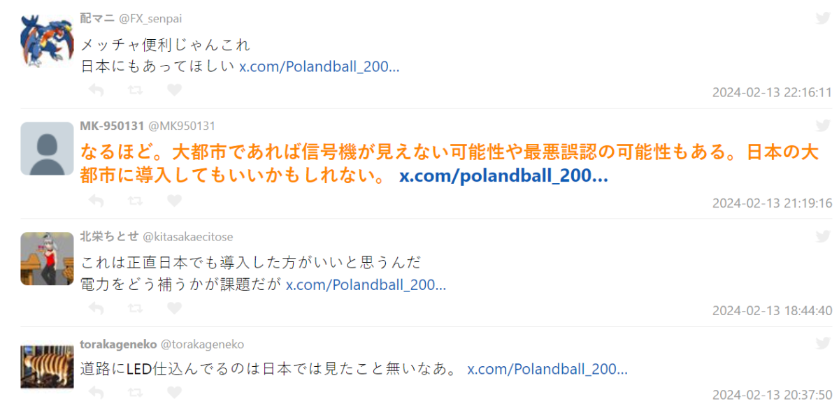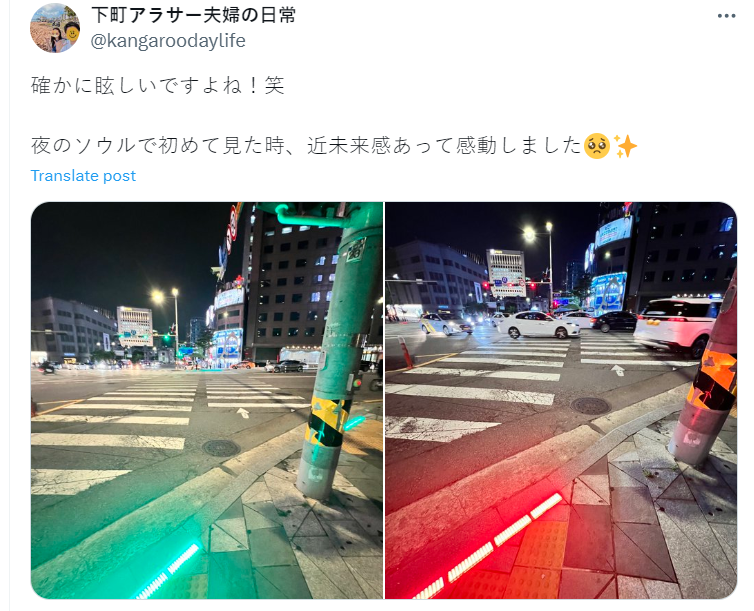 日本 X 上,有人發現首爾當地有種「地面紅綠燈」,直接將交通號誌燈配置在路口地面,讓你就算低頭都會發現號誌燈的光芒,減少你忽視的可能。這樣的配置也成為討論話題,更有人認為可以導入到日本使用。