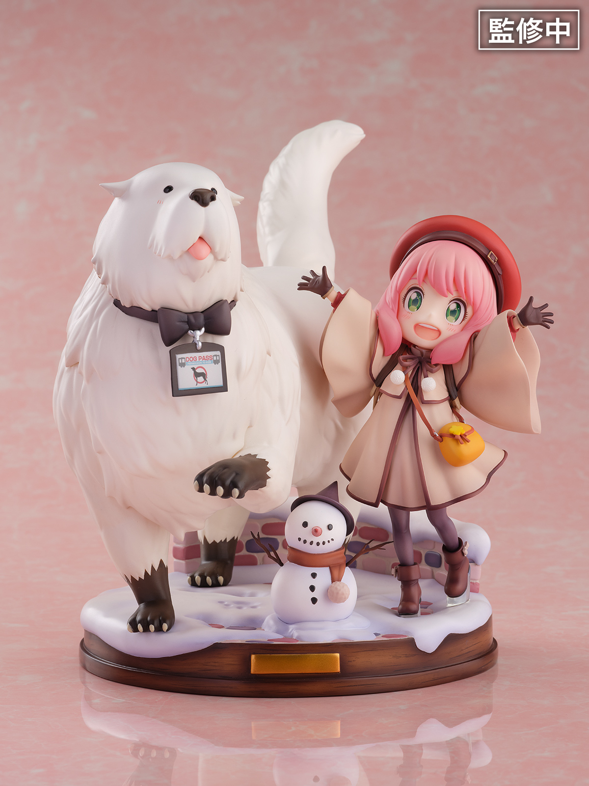 「劇場版 SPY×FAMILY CODE: White 安妮亞 & 彭德」1/7比例場景模型,尺寸全高約 20 公分,以佛傑一家人到了冰雪覆蓋的小鎮、度過愉快的時光為概念,安妮亞換上了到雪地遊玩的冬季服裝,紅色鴨舌帽與黑色絲襪等細節相當精美,無論是動作或表情都傳達出哇哭哇哭的喜悅情緒;彭德則是吐出小舌頭,臉上還有泛紅的刻畫,蓬鬆的毛也非常可愛!雪地上還有彭德的腳印~底座的細節能夠讓人盡情享受雪國氛圍!