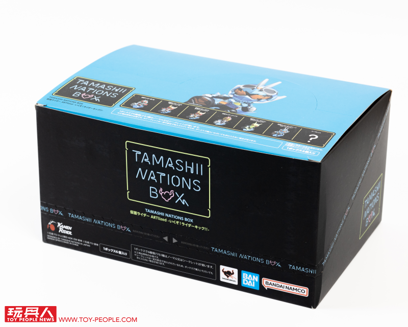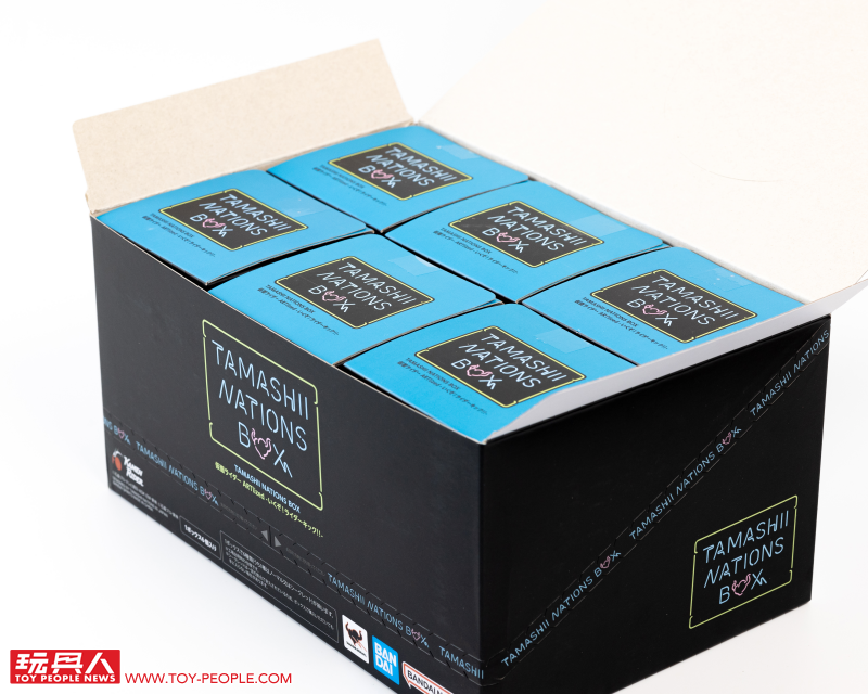 ▼ 包裝外盒是以黑色、淺藍色為主調,正面有著大大的 TAMASHII NATIONS BOX 系列標誌,頂部則是主打最新的假面騎士GOTCHARD;不同於上回超人力霸王的 8 款,本次的一中盒裡頭是 6 小盒。