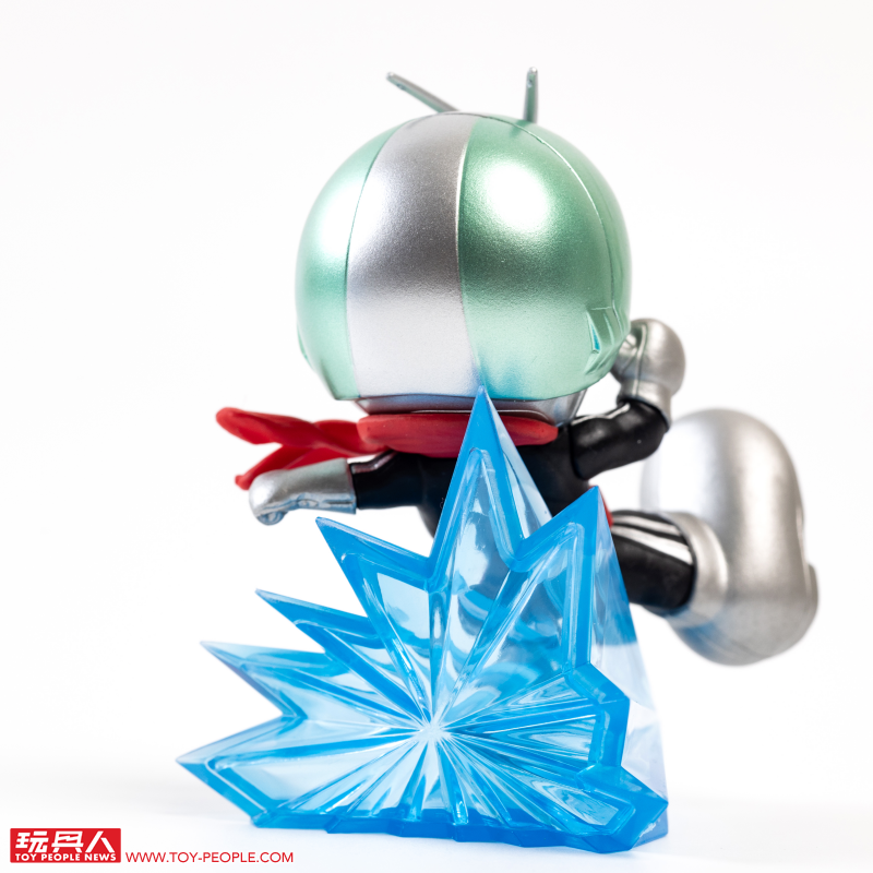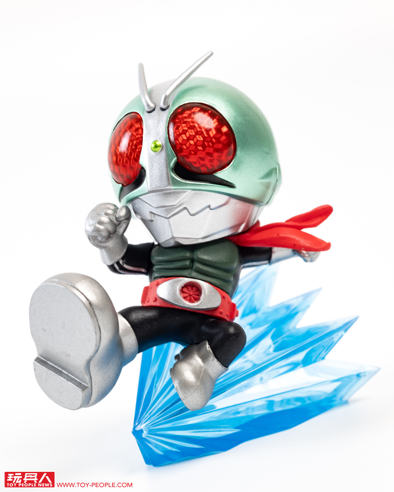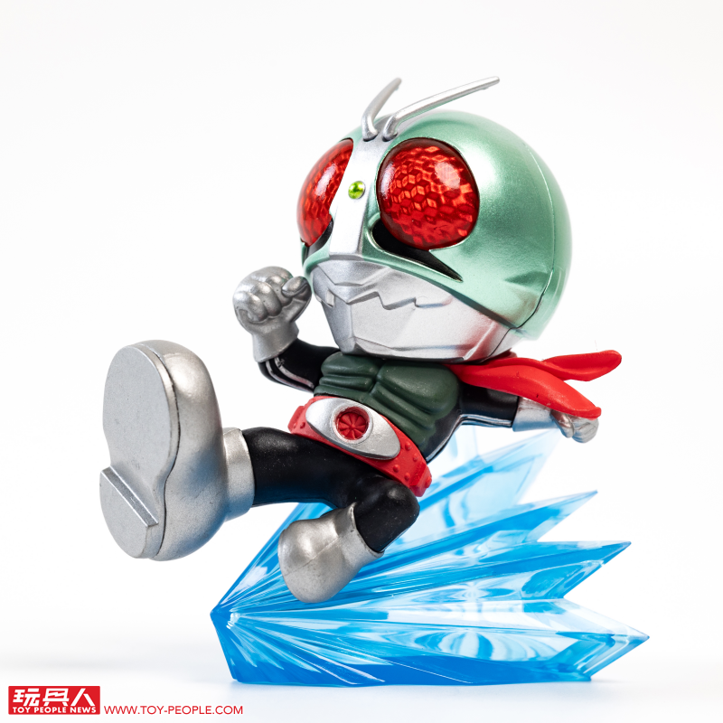 首先要看到的新1號在頭部擁有漂亮的金屬光澤感,透出精密造型感的紅色複眼也十分漂亮,除了將腰帶的細節考究刻畫之外,強烈飛舞的領巾也為「技之1號」的帥氣身姿增添速度感!