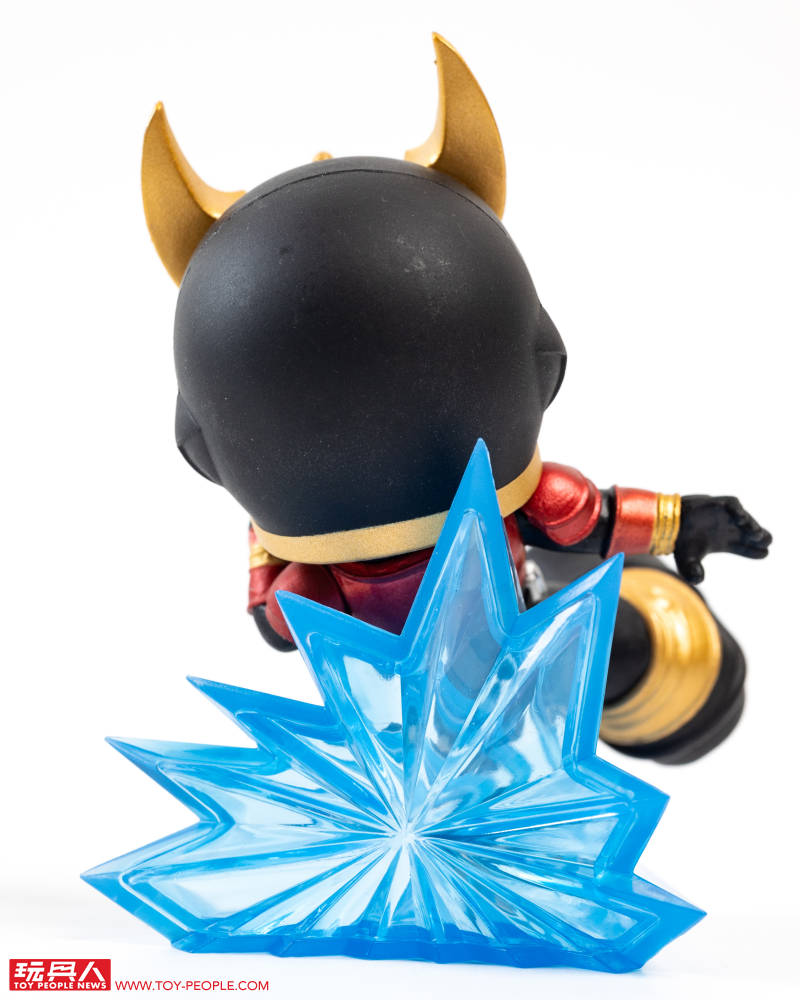 接著是空我最初始也最讓人印象深刻、能夠操縱火焰元素的全能形態,頭部的金角在 Q 版化之後變得更加搶眼,腰帶的細節與亞克魯雕刻的臨多文字、位於腳底的臨多文字「封印」皆刻畫出來,但在色彩部分的呈現就沒有著麼精細了。