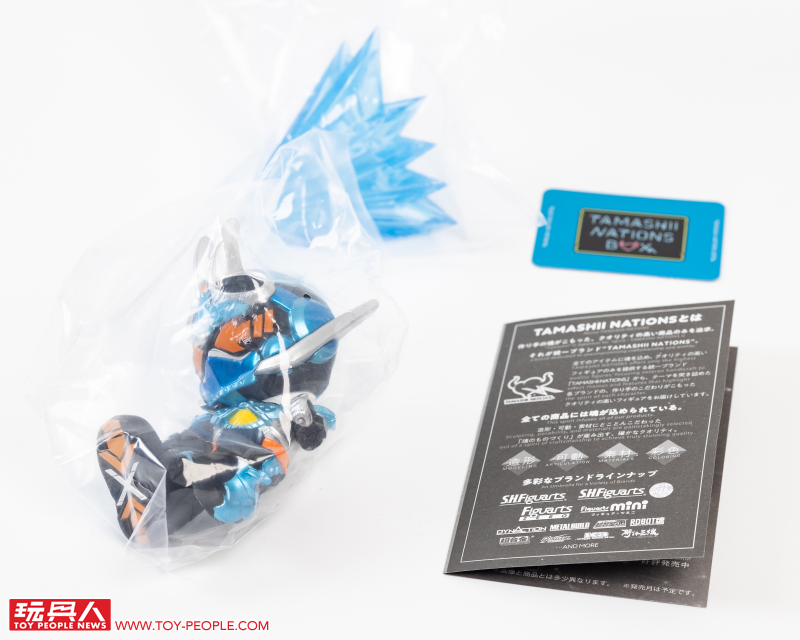 ▼ 內容物包含 SD 比例的假面騎士本體、底座、角色卡片,以及關於 TAMASHII NATIONS、假面騎士玩具系列的介紹小卡。