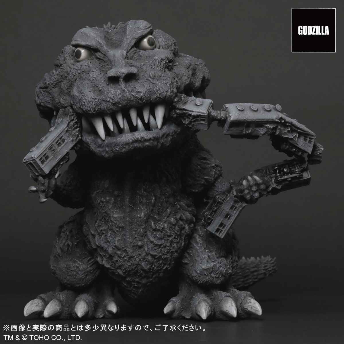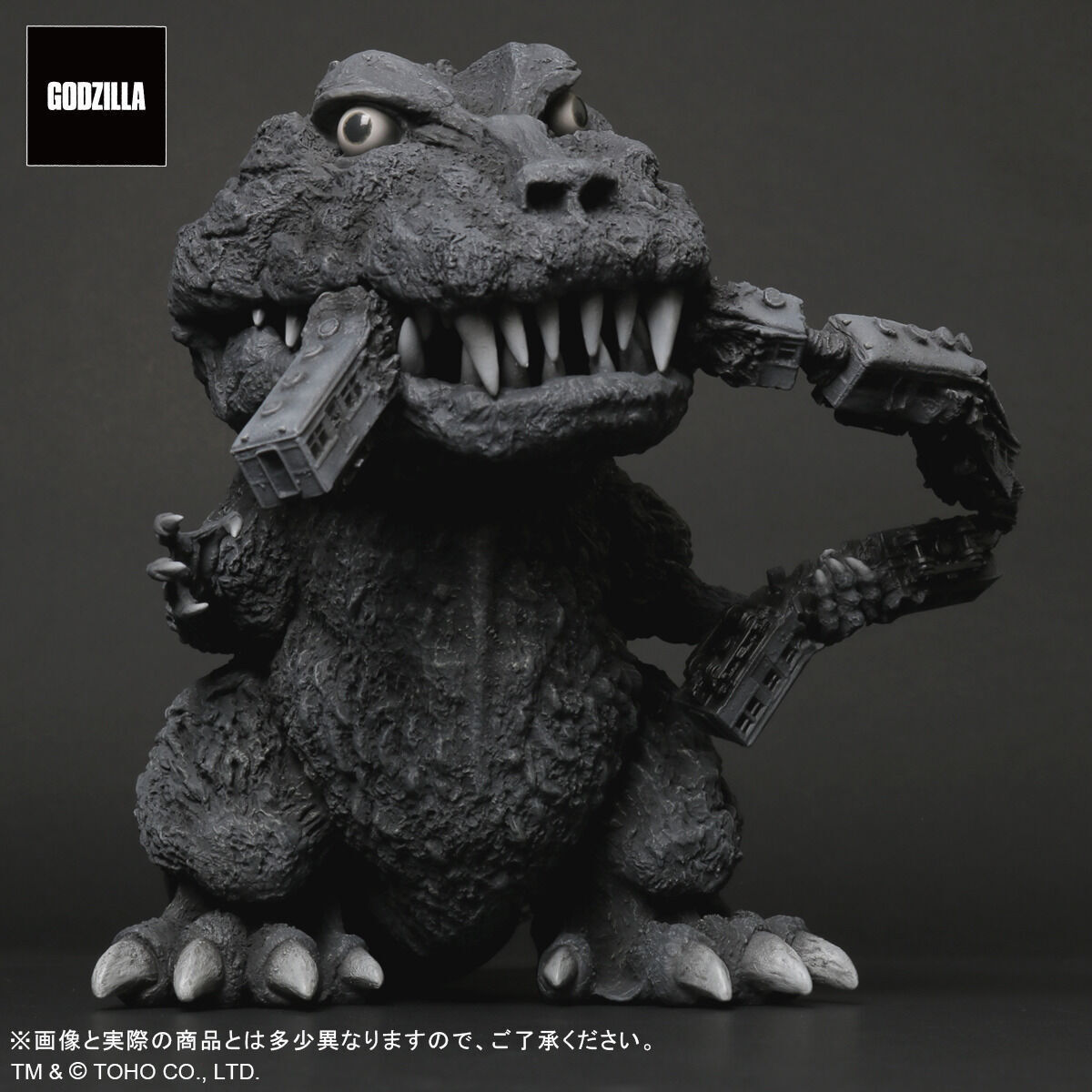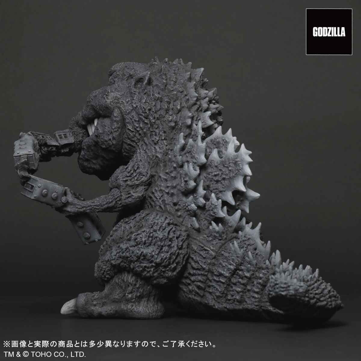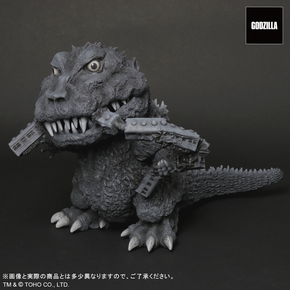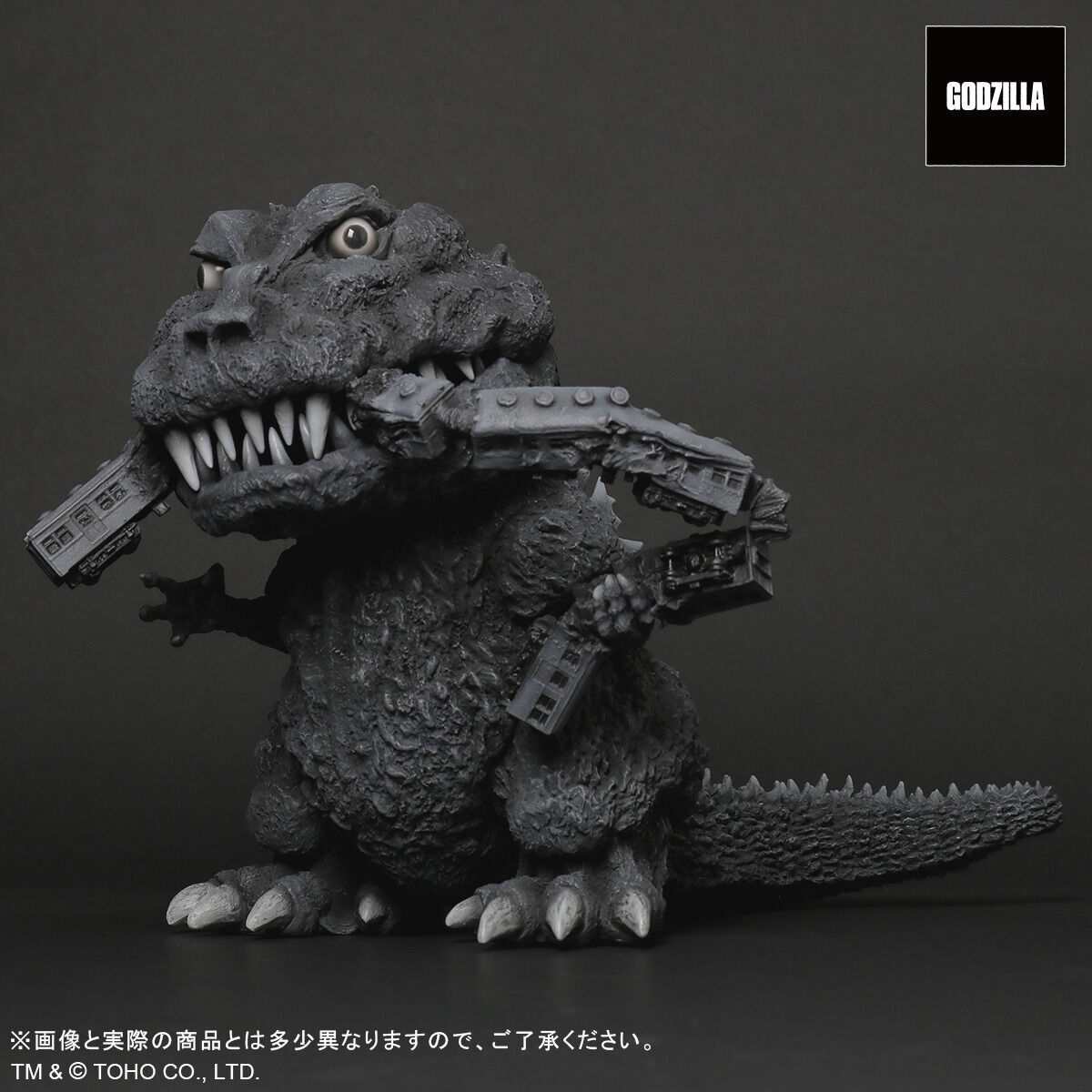 「GIGANTIC × DEFOREAL 哥吉拉 (1954)黑白ver.」,結合 GIGANTIC 的巨大尺寸與 DEFOREAL 的 Q 版擬真造型,將原本約 13 公分的 DEFOREAL初代哥吉拉 放大到高 24 公分、長 39 公分的大份量!採用全新塗裝還原電影中的黑白色調,再現了原作的力量!造型重現哥吉拉在劇中經典的咬著電車場景,電車也可以透過替換零件卸下,呈現一般造型;圓圓的眼睛與尖銳的利牙驚悚駭人,在利爪、背鰭、皮膚等細節的塗裝也擁有逼真的精細度,但整體卻帶有可愛趣味感!