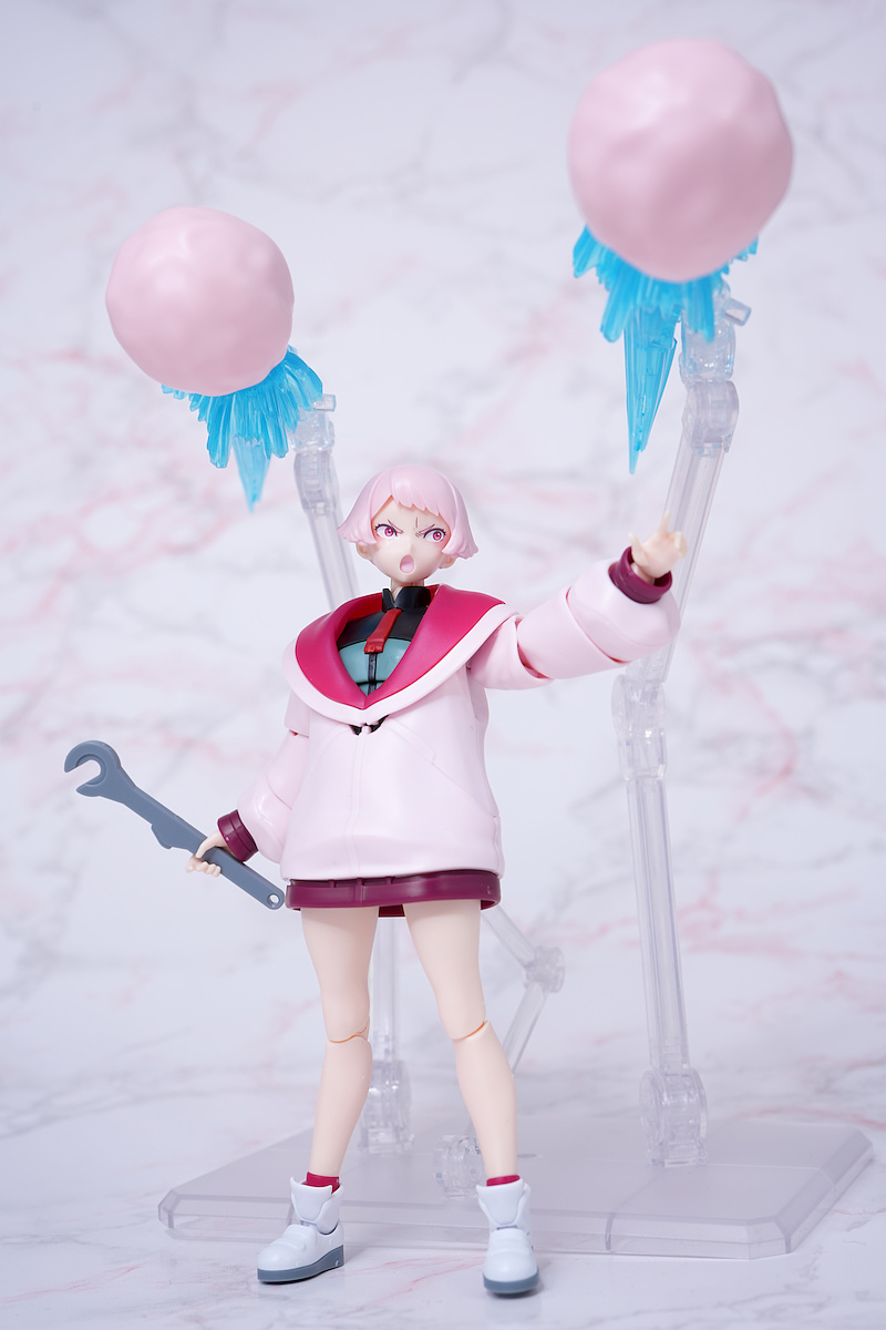 不少粉絲都在劇情中被雀丘前輩這個粉紅色圓球誇大的髮型吸引以及孔武有力的格鬥戰力吸引,劇中還出現「修正拳」、手持扳手以及「亞洲蹲」等各種形象,就是等著可動模型一出來玩一波 !