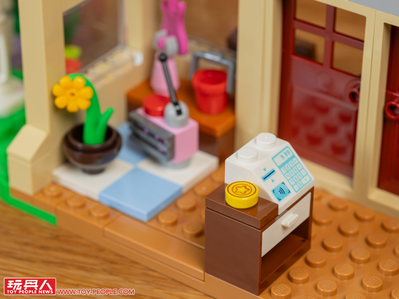 ▼ 透明零件打造的窗戶可以讓人從外頭就看到店內的有什麼商品,各位玩具人也可以自由替換喔。