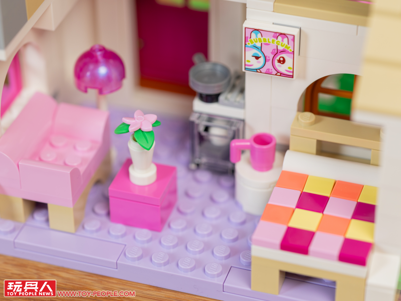 ▼ 來看一下彭花家的擺設~整體走一個粉色、粉紫色的搭配相當少女呢~感覺整個屋子都香香的,這裡跟剛剛的音音家一樣,樂高也都希望你可以自己重新擺設家具、享受到與遊戲裡相仿的樂趣。