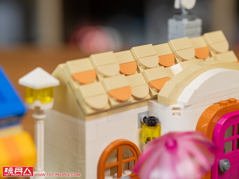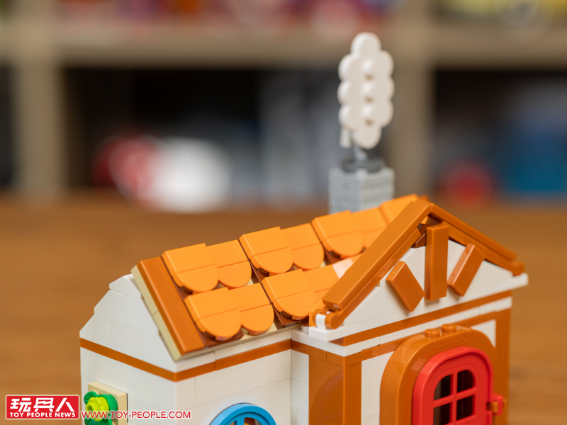 ▼ 斜屋頂與門面的堆砌、雲朵零件當作煙囪白煙的設計都很有意思。