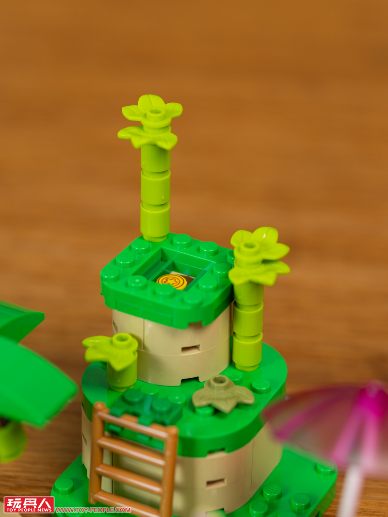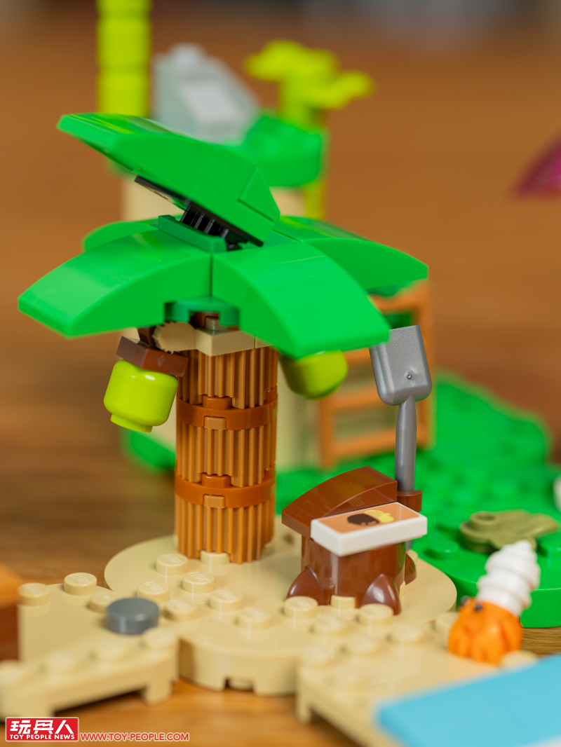 接著是將航平的小船與海灘地形結合、唯一一款的靠海場景組,可以看到沙色的地板零件、打到岸上的浪花、造型呈現相當有趣的椰子樹,航平小船的堆砌也很不賴!