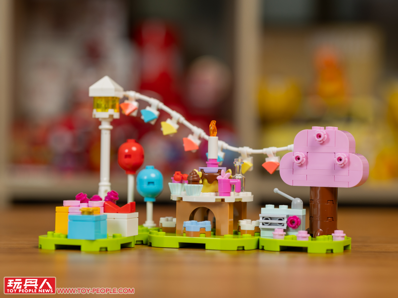 接著我們終於進入有建築物的部分啦!先說,如果在這波盒組中只能買一組,小編個人的首選絕對是這款,除了因為動森當家門面:西施惠的人偶之外,這盒的內容還有相當可愛的房子、DIY 作業台、氣球綁著的飛天禮物、蘋果樹......等遊戲中十分經典的元素。