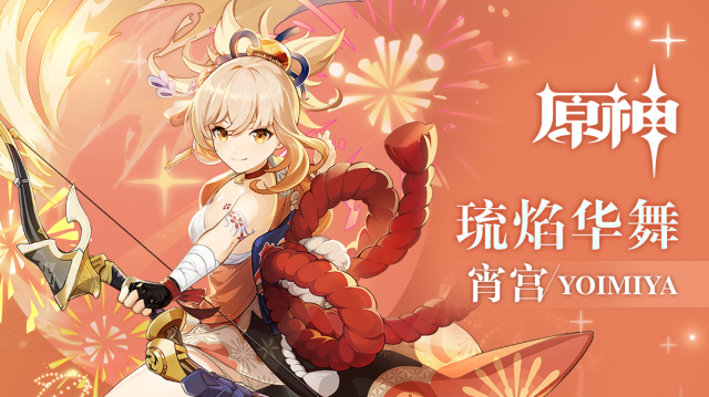 「宵宮」在遊戲中是虛構國家稻妻中長野原煙花店的店主,也是位才華橫溢的煙花匠。角色的日文配音為植田佳奈,在 2021 年 8 月上線實裝,在 2.0 版本更新之後宵宮作爲稻妻版本的主線的重要角色登場。