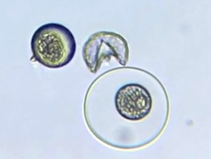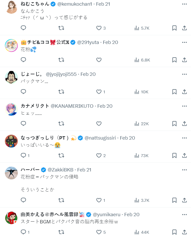 分享的推主でんか(@K_theHermit)從事生物觀測,這個看起來小精靈,半張開嘴巴的鏡頭下生物,事實上是「杉樹花粉」( スギ花粉 ),因為即將迎來春季,針對日本普遍都有的花粉症進行研究下發現的新奇玩意。