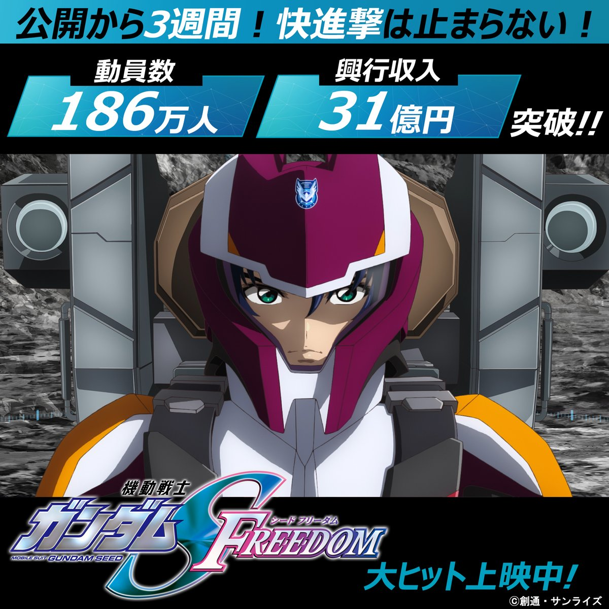 1 月 26 日在日本上映的劇場版動畫《機動戰士鋼彈 SEED FREEDOM》,睽違 近 20 年的最終章吸引大量粉絲進場欣賞這部等待許久的系列作,其後佳評不斷也讓打出口碑讓更多人進場,已成為鋼彈歷史以來票房最佳的劇場版。