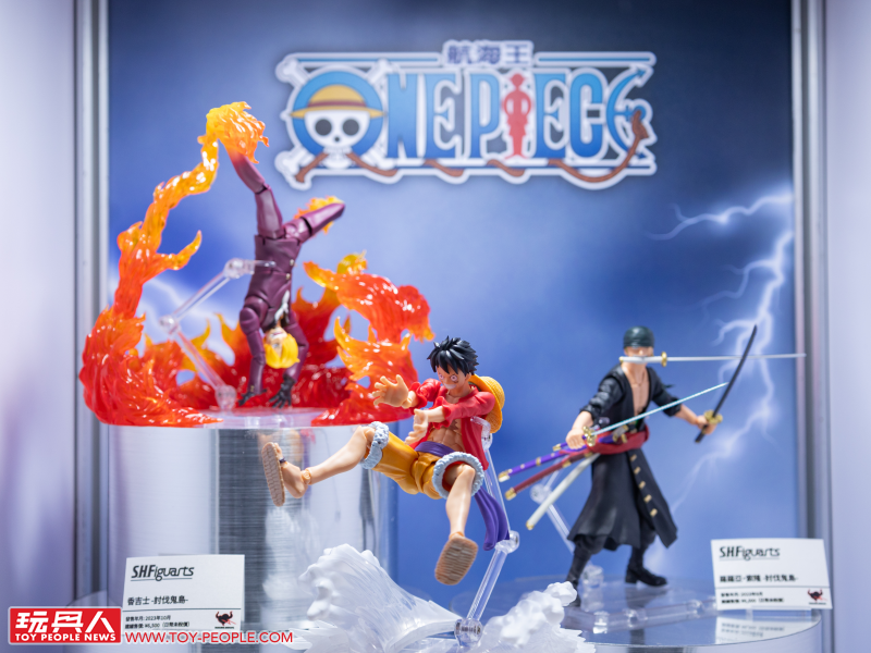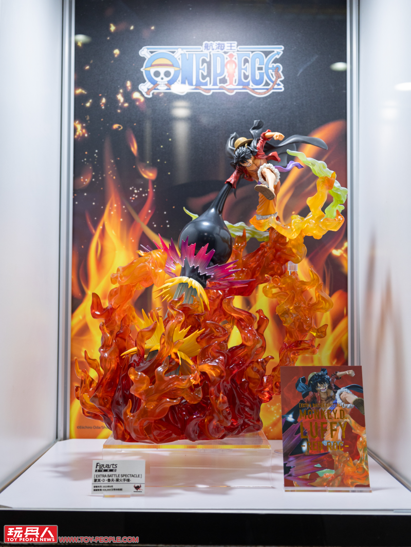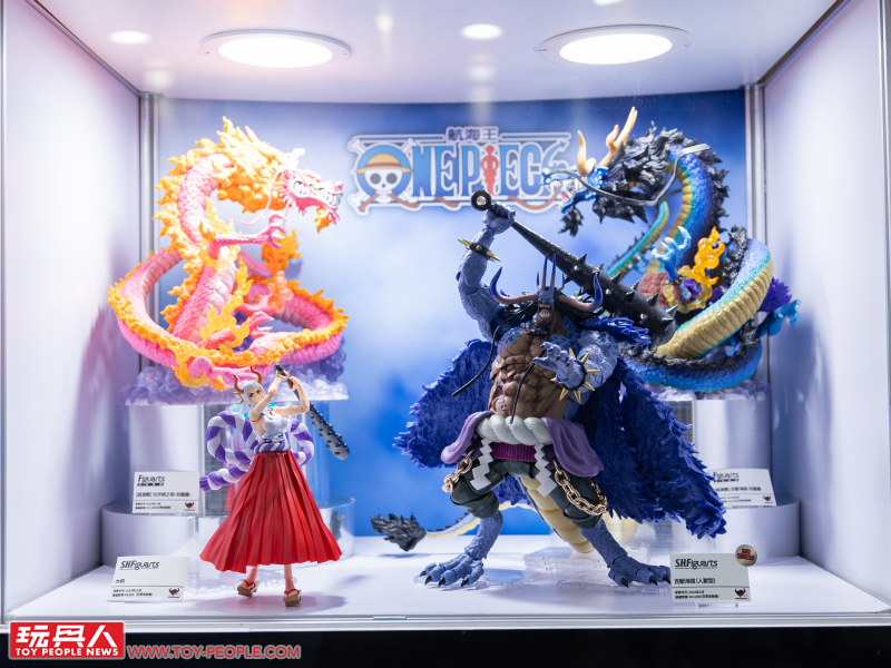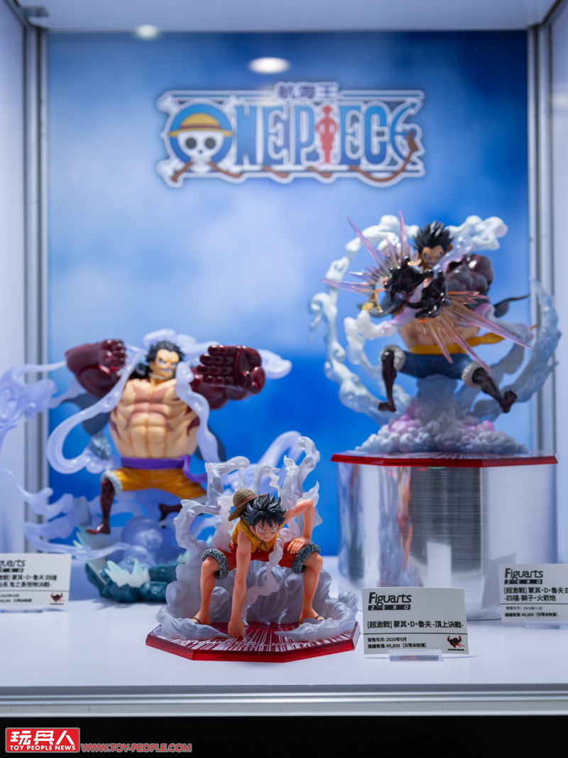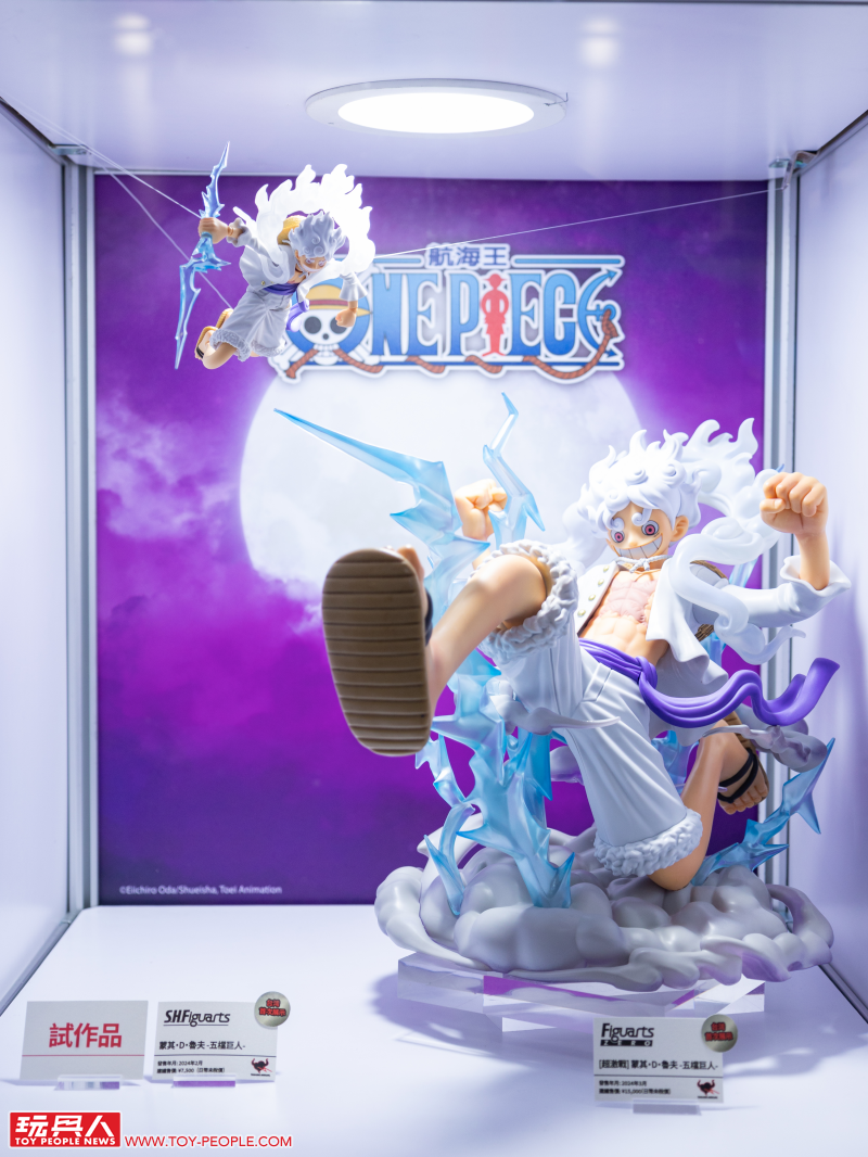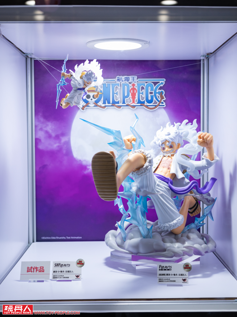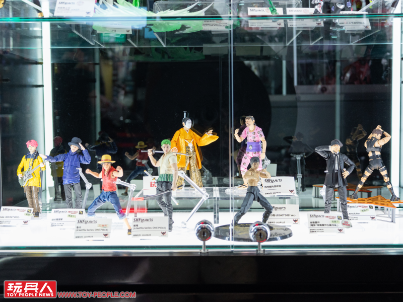 本次主打「將玩具當作藝術品一般展示、讓人可以細細品味」的 Gallery Showcase 第一會場在展櫃外頭都做出了畫框樣式的輸出,給人十分清晰、乾淨,且帶點高級感的視覺效果;首先看到最讓小編興奮的航海王區(展場外側),尺寸巨大的 Figuarts ZERO 超激戰「魯夫-五檔 巨人」跟 SHF 的五檔魯夫肯定是一大亮點!而一旁 SHF 的海道(人獸型態)可動人偶也同樣極具魄力!