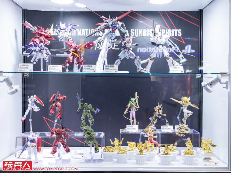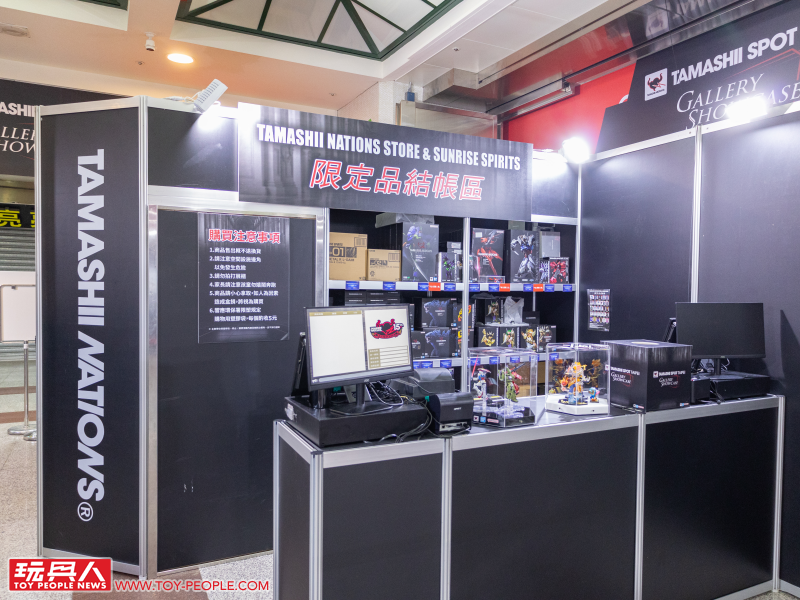 再來我們進去會場吧!一開始看到的這櫃是 TAMASHII NATIONS STORE 與 SUNRISE SPIRITS 的限定商品,現在只要來台北地下街就買得到!