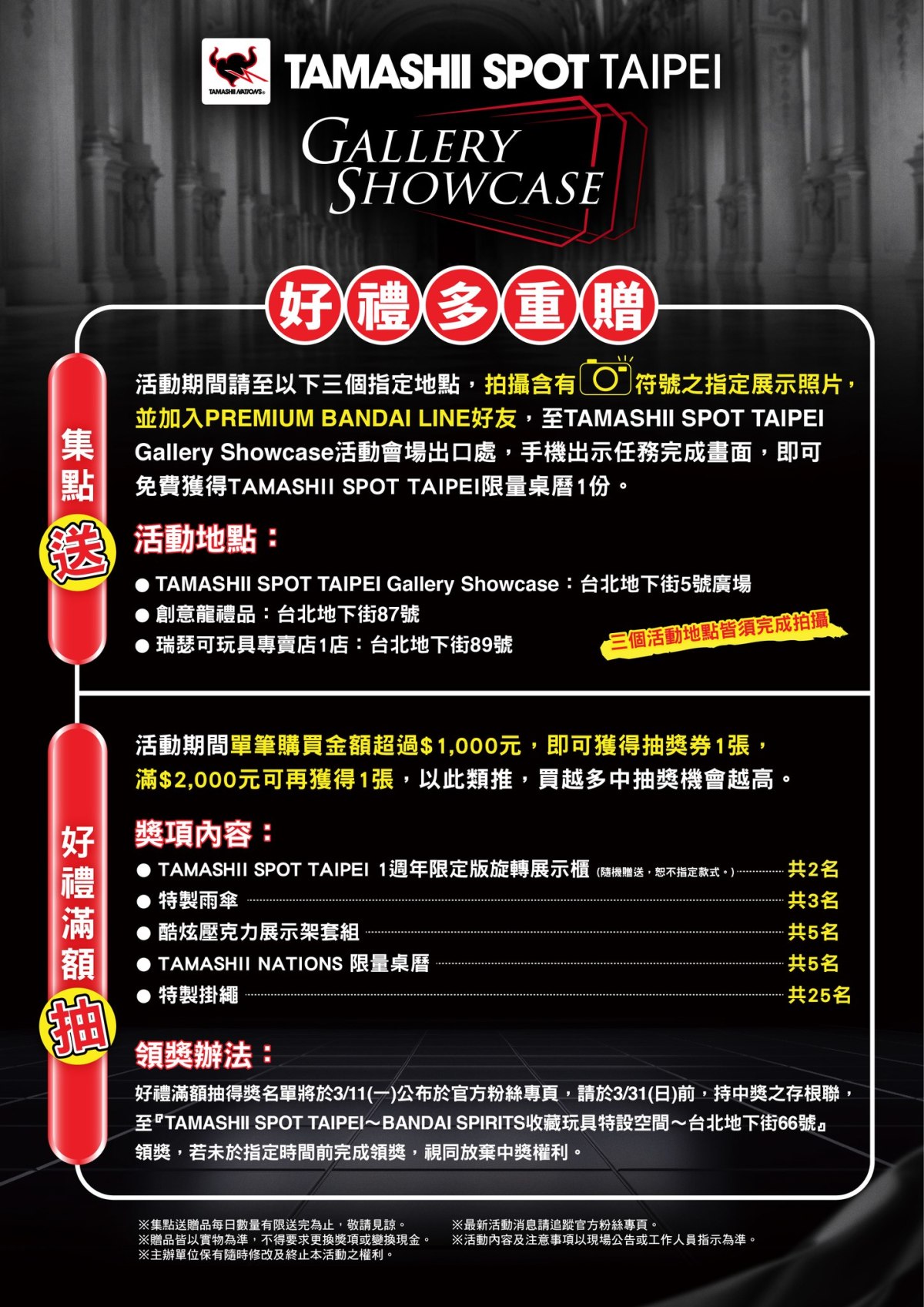 • 第二會場:TAMASHII SPOT TAIPEI~BANDAI SPIRITS 收藏玩具特設空間(台北地下街 66 號店鋪)