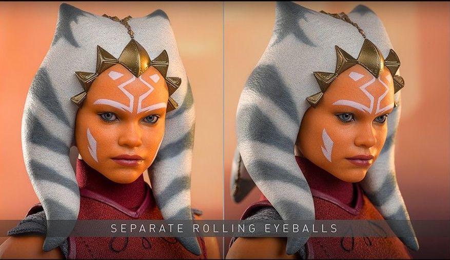 特製素體高約27公分,有28個可動關節,手臂採用矽膠無縫設計隱藏關節。頭雕部分細緻的臉部雕刻再現了年輕亞蘇卡演員雅瑞安娜·葛林布雷(Ariana Greenblatt)的精緻面容,配有可動的眼球設計,稚嫩的臉龐帶有堅毅的眼神。托古塔族藍白條紋頭角及雙頭尾也是全新打造,與金屬頭飾的搭配呈現出亞蘇卡獨有的美感。