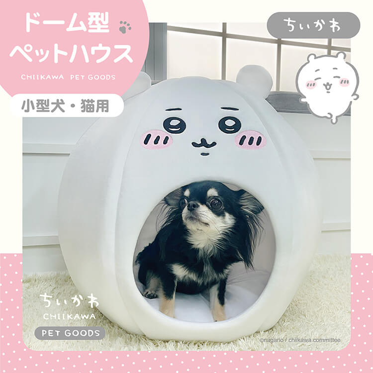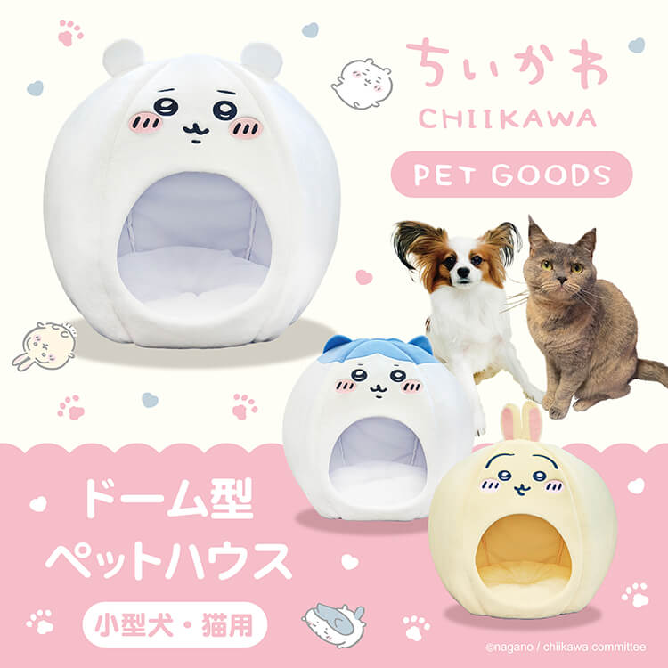 三種造型包含 : 吉伊卡哇、小八貓跟兔子,將牠們圓圓的臉龐變成圓頂狀的寵物小屋,大小約 W 47 × H 47 × D 42 cm,適合貓咪或小型犬使用,除了每個角色的臉部設計之外,就連耳朵也被製作出來,格外可愛。