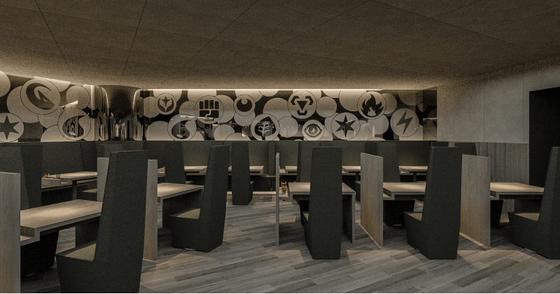 「POKÉMON CARD LOUNGE」也是官方第一家以 PTCG 為主題的交誼空間,目前裝潢皆為模擬畫面,尚未揭露正式樣貌,不過應該也相去不遠。