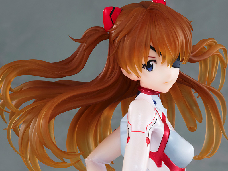Wanderer「式波・明日香・蘭格雷 1/7比例模型」,尺寸全高約 24 公分,以明日香在《終》劇中穿上「深深度下潛用耐壓試作作戰服」進行最終作戰的造型為基礎,由 Wanderer 原創的回眸撩人姿勢展現明日香的身材曲線,尤其是從背部到腰部、臀部、腳趾的線條~另外要注意的是在作戰服的塗裝,除了珠光的色澤之外,還保留了明日香肉體透出的淡淡膚色。飄逸的頭髮零件採用透明材質,施以漸層塗裝表現髮尾的透光感。手裡拿著經過設計再現的「停止信號塞」,臉上嚴肅的神態也相當迷人!